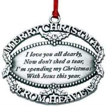 Merry Christmas from Heaven Pewter Finish Keepsake Memorial Ornament with Poem
