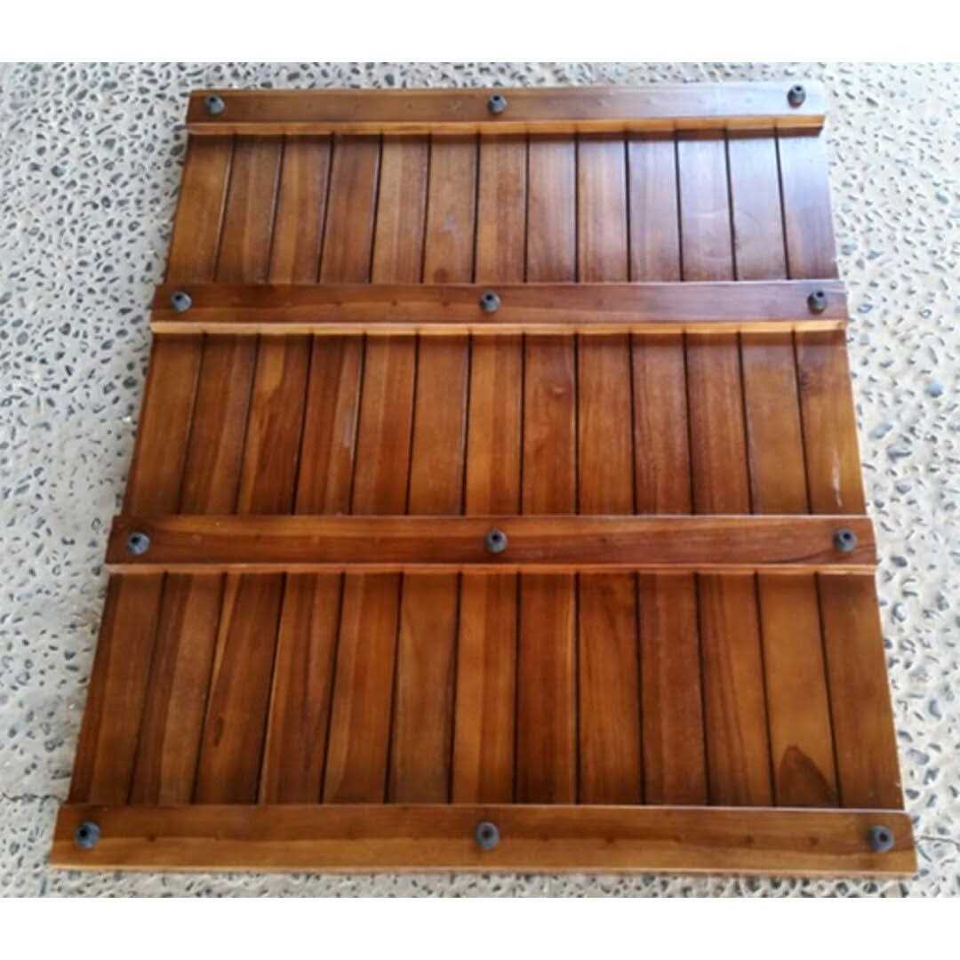 Teak is the only wood that is really suitable for a bathroom floor due to the damp and wet condition. Three sizes are available 36″ x 30″, 30″ x 20″ and 20″ x 20″ to fit various shower or bathroom floor sizes. Excellent also for an outdoor garden area and entry door way.