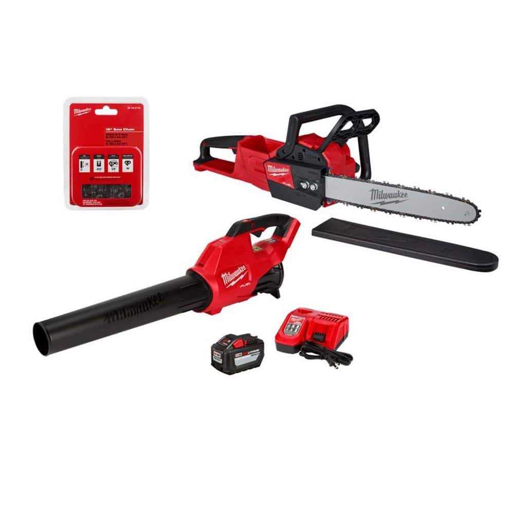 Milwaukee M18 Fuel 16 in. 18-Volt Lithium-Ion Brushless Battery Chainsaw Kit with M18 Fuel Blower, Extra Chainsaw Chain