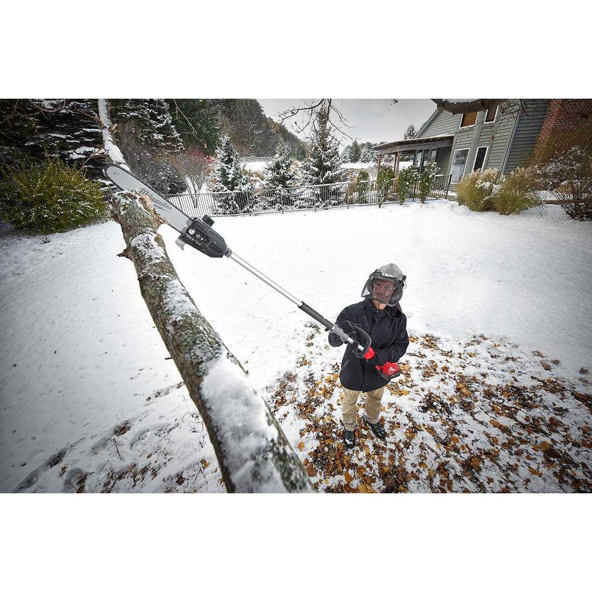 This Milwaukee M18 Fuel Pole Saw Kit with QUIK-LOK has the power to cut hardwood branches and other tough brush, delivering up to 150 cuts per charge. The versatile M18 Fuel system is made up of 2 components, an M18 Fuel power head, plus a QUIK-LOK pole saw attachment. The QUIK-LOK attachment system offers the ability to quickly swap out other attachments sold separately in the M18 Fuel system to handle additional yard chores when the overhead trimming is done. Operates off the M18 REDLITHIUM HD9.0 battery pack system, using REDLINK PLUS intelligence hardware and software to ensure optimal power, performance and the extended run time you need without bogging down on the jobsite. Kit includes 3ft. extension, 18V REDLITHIUM high-demand 9.0 battery pack and M18/M12 rapid battery charger. Bar Length in. 10, Battery Included Yes, Dimensions L x W x H in. 84 x 6 1/2 x 9, Operating Height ft. 6 5/8, Product Type: Cordless, Product Weight lbs. 12.7 w/battery, Volts 18, Charger Included Yes. Complete kit includes power head, pole saw attachment, battery and rapid charger M18 FUEL Pole Saw with QUIK-LOK is part of the M18 system which is fully compatible with over 150 tools POWERSTATE brushless motor in the power head generates the power and performance of high voltage platforms. REDLINK PLUS Intelligence ensures optimal performance and provides overload protection to prevent damage to the tool and battery during heavy applications. Compatibility across the entire M18 System Reaches full throttle in under 1 second and delivers up to 4600 RPM 10in. Oregon bar with 0.043in. chain gauge and 3/8in. low profile chain pitch for smooth, fast cuts with minimal kickback. Variable speed trigger provides ultimate control over the entire power range 80 inch length provides over a 6.5ft. reach for those high branches.