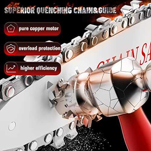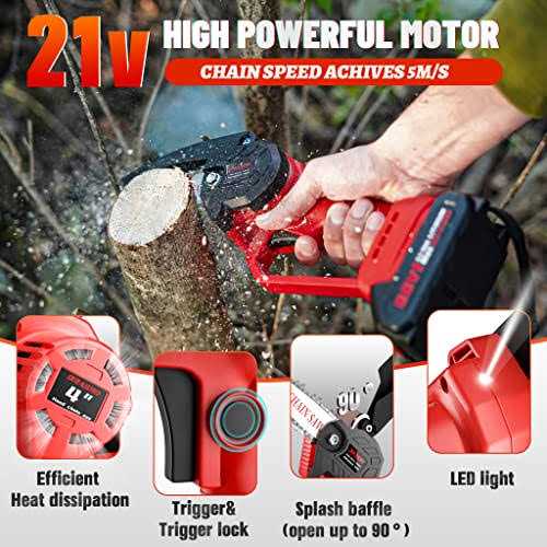 【Efficient Cutting&Strong Power】- This Dragro handheld small mini electric chainsaw has a built-in durable pure copper motor,premium saw chain,strong power, fast cutting, improve efficiency. – Ah lithium battery.continuously working about 60~80 minutes after being fully charged. – The two batteries can be used in turn. 【One-Hand Use】- Mini lithium battery chainsaw just about 0.7KG slim body, and Its small size also allows it to fit into tight or awkward spaces that larger saws could notconvenient access to all places. And comfortable to hold, Very suitable for women and the elderly, and will not feel tired after a long time of use. The 4-inch electric chainsaw has been assembled, only to simply use the included screwdriver to adjust the chain tightness, plug the battery and you can use it. 【Triplex Safety Protection】-The Upgraded portable cordless mini chain saw. it adds a 90°rotatable top guard baffle to prevent wood splashing. – And added an open safety lock switch, you need to hold down the safety lock and trigger at the same time to start the saw to prevent accidental start. In addition, the micro-light mode is added, which can play a role in lighting in dark woods. – DRAGRO will provide the best service. 11