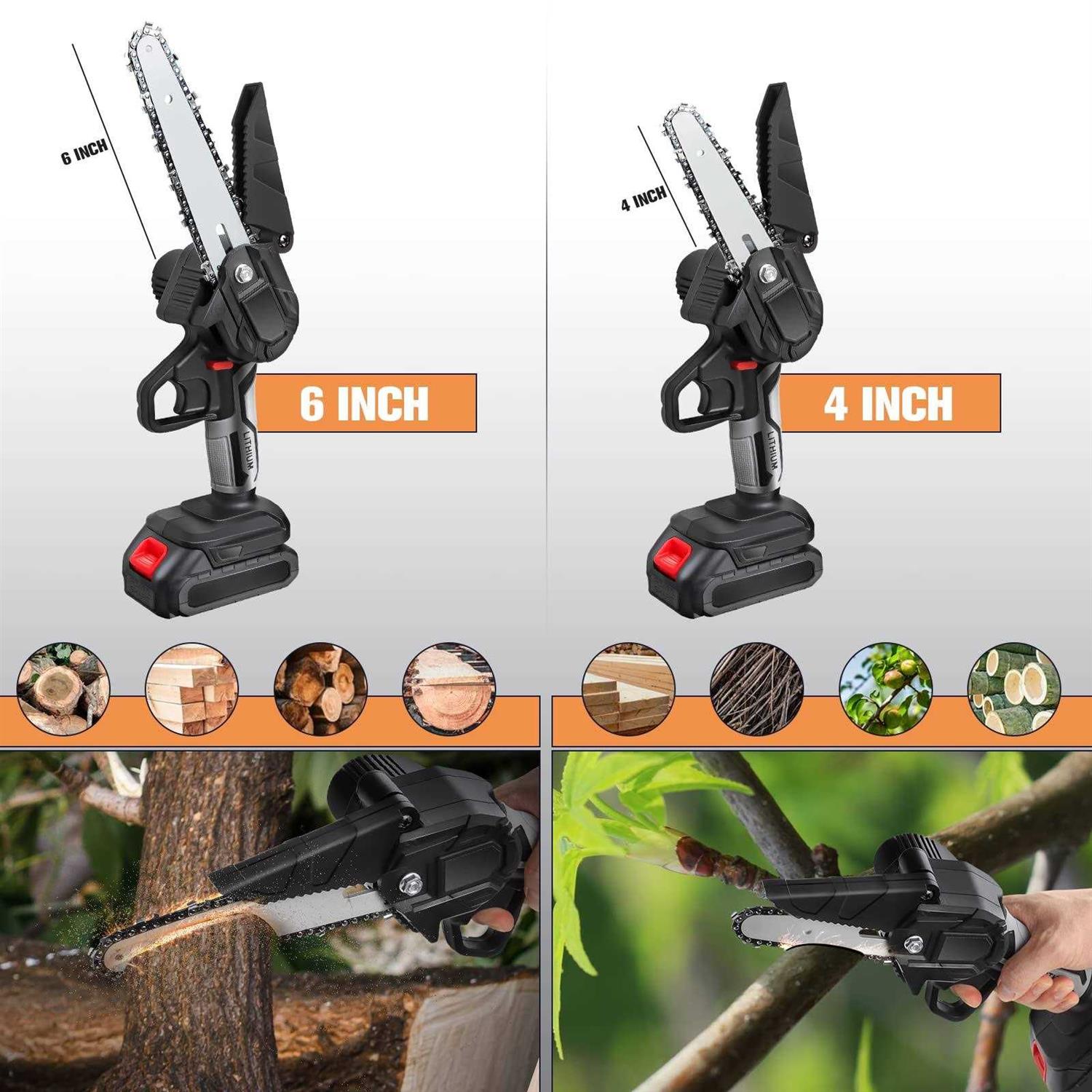 Mini Chainsaw Cordless with Battery 6-inch and 4-inch 24V 2-in-1 Mini Electric Chainsaw Set 22000rpm Speed