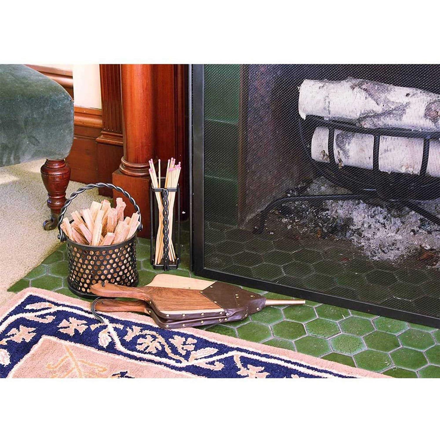 Simple, clean design makes this fatwood caddy a perfect addition to your hearth! The graphite powder finish covers the entire hole-punched metal bucket, solid base, and handle-a traditional look that will match any decor and unobtrusively add organization to your fireplace. The caddy comes packed with fatwood-four pounds-and stands on a sturdy base. You’ll love the simple twisted rope styling featured on the basket handle. Don’t worry about this little item getting in your way-It measures almost 7 inches across, and just 5 1/2 inches in height. Park this next to your fireplace and get things started with ease!
