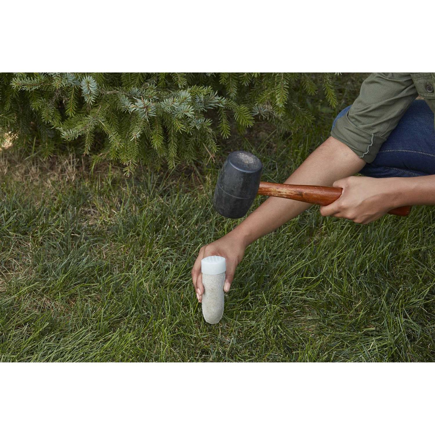 Trees, shrubs and ornamentals can make low-maintenance and long-lasting additions to your landscape. In order to provide color and structure, they will need an occasional feeding – particularly for younger trees and shrubs. These plant food spikes promote deep, vibrant color and foliage on all evergreens and acid-loving plants. These easy-to-use spikes provide nutrition directly to the roots, where trees need it most. Apply once in early spring and once in mid-fall when the ground is soft and moist. If the ground is dry, wet it before driving the spikes. To use, place an enclosed plastic cap on top of the spike, then drive it into the ground around the tree or shrub. Spikes should be at least 3 feet apart. For small trees and shrubs with a drip line closer than 2 feet, insert spikes 2 feet away from the center of the shrub or tree trunk. Remove the plastic cap and save for future use. Continue to drive spike 2 inches below the soil surface. One pack contains 12 spikes.