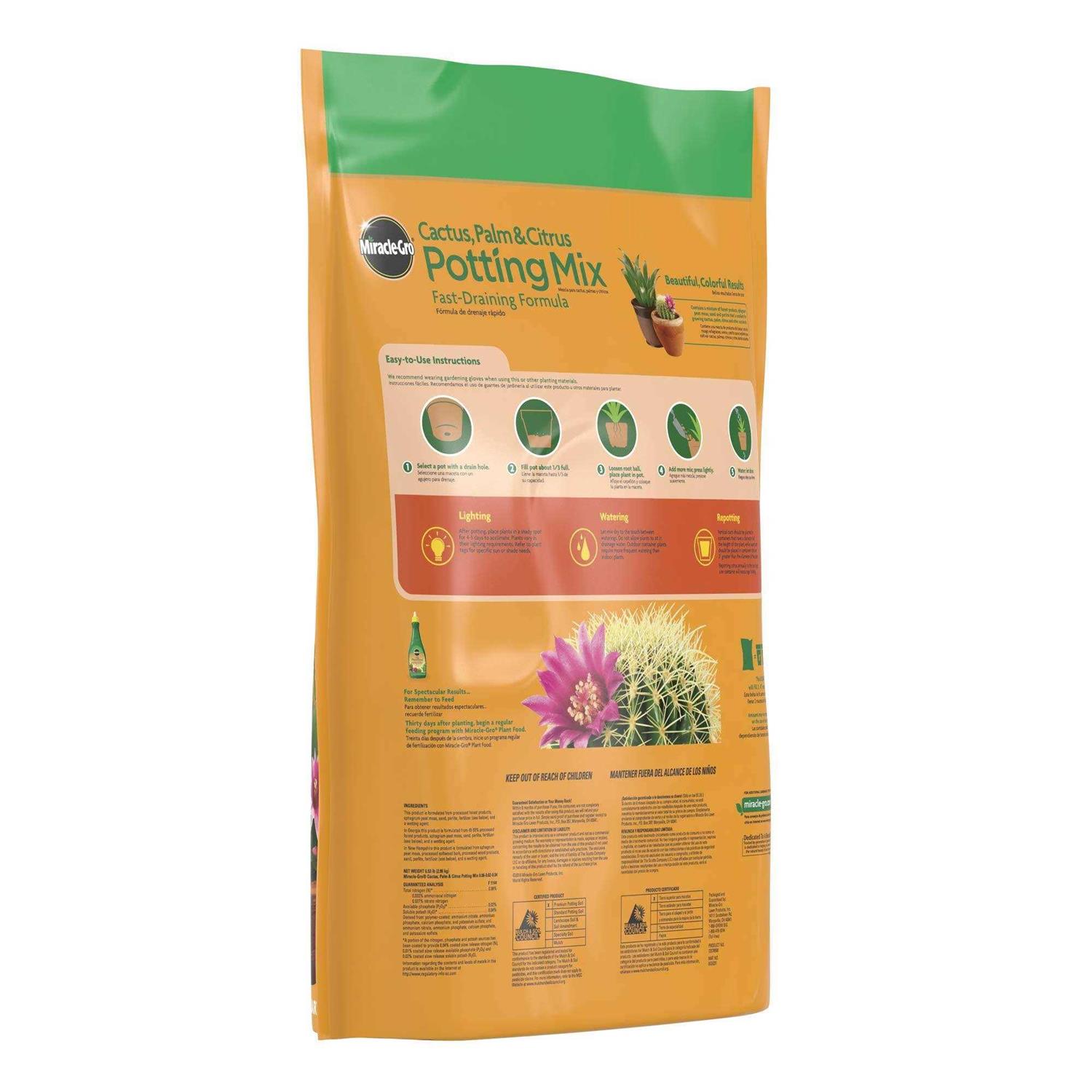 Cactus, Palm & Citrus Mix. Fast-draining formula contains a mixture of Sphagnum peat moss, composted forest products, sand and perlite that is excellent for growing cactus, palm, citrus and other succulents Helps prevent soil compaction and improves drainage.