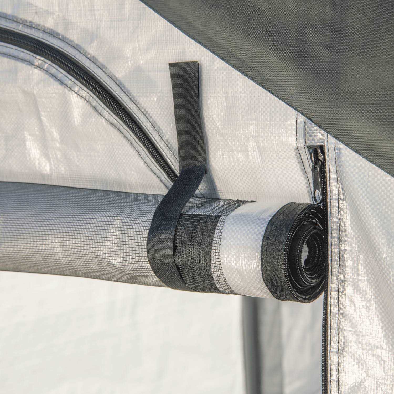 - Half-moon-shaped zippered screens on both end panels for adjustable air circulation