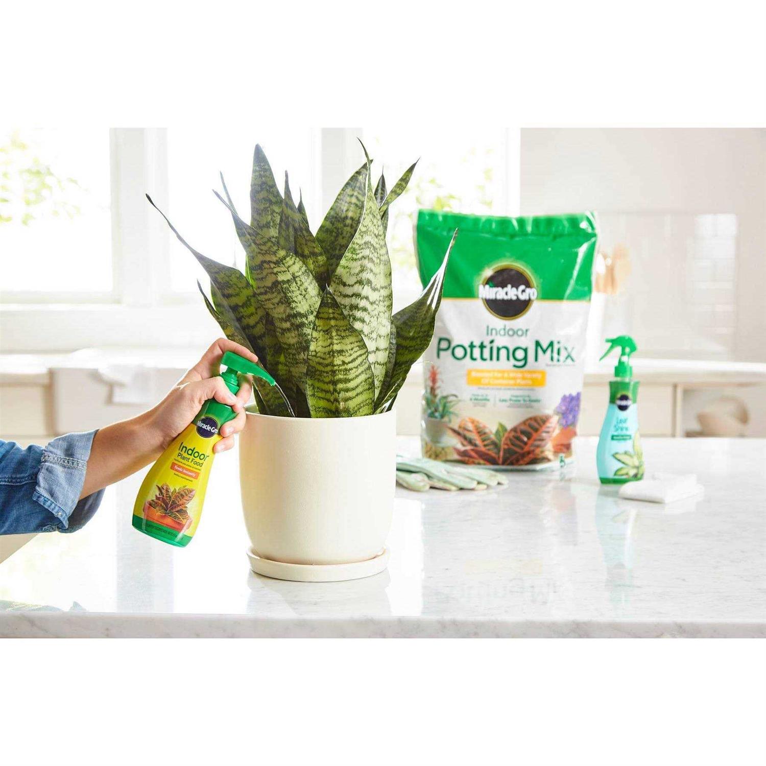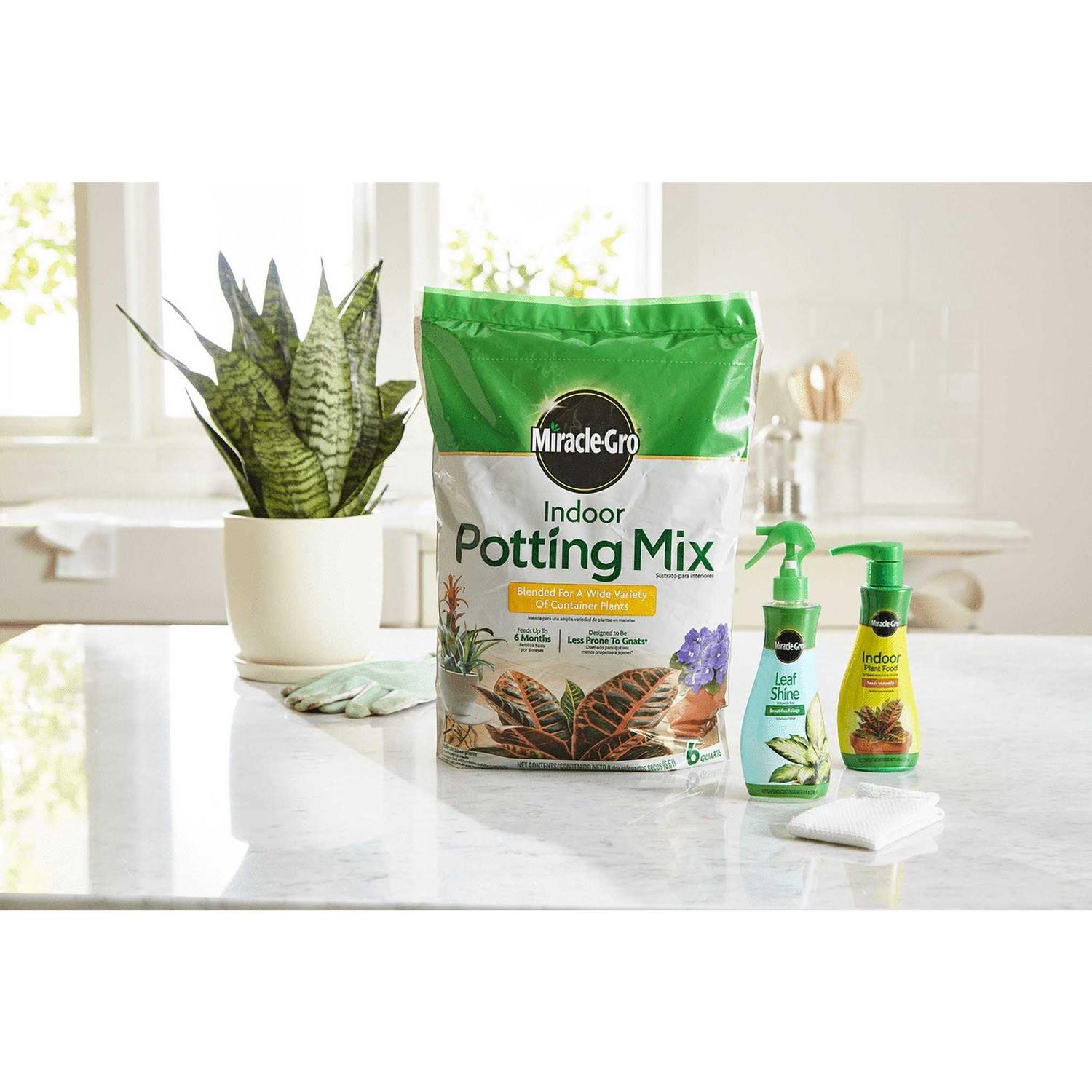 Miracle-Gro Indoor Potting Mix, Indoor Plant Food & Leaf Shine – Bundle of Potting Soil (6 qt.), Liquid Plant Food (8 oz.) & Leaf Shine (8 oz.)