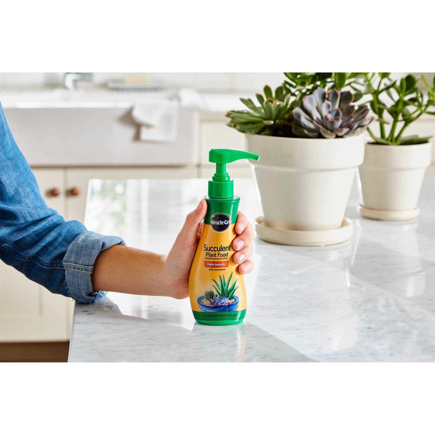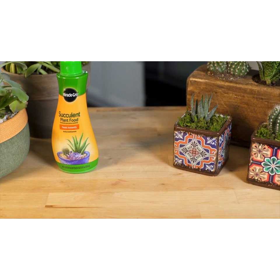 This plant food formula has been specifically designed for all types of cacti as well as jade, aloe, and other popular succulents. Apply directly to the soil, or mix it with water and apply to your plants every 2 weeks. When applying directly to the soil, use 1 pump for smaller pots and 2 pumps for larger pots (anything over 6 inch in diameter). After applying, you can water plants as usual. When applying with a watering can, mix 8 pumps per each quart of water. You will enjoy beautiful succulents with Miracle-Gro Succulent Plant Food. When growing succulents, remember not to overwater or prune your succulents but be sure to place them in areas where they will receive good light. They also need good soil to take root in, so consider planting your succulents in Miracle-Gro Cactus, Palm & Citrus Potting Mix.