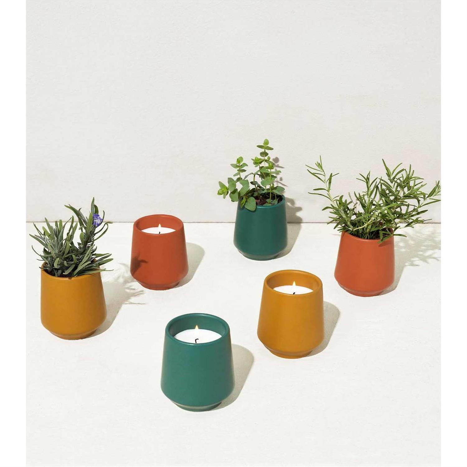 A 6oz soy-blend scented candle is outfitted in a matte glazed ceramic vessel and includes an organic seed packet to grow plant once the candle has been burned down. Candle and seed packet are packaged inside a beautifully designed box for easy gifting. Plastic-free packaging. 42 hour burn time.