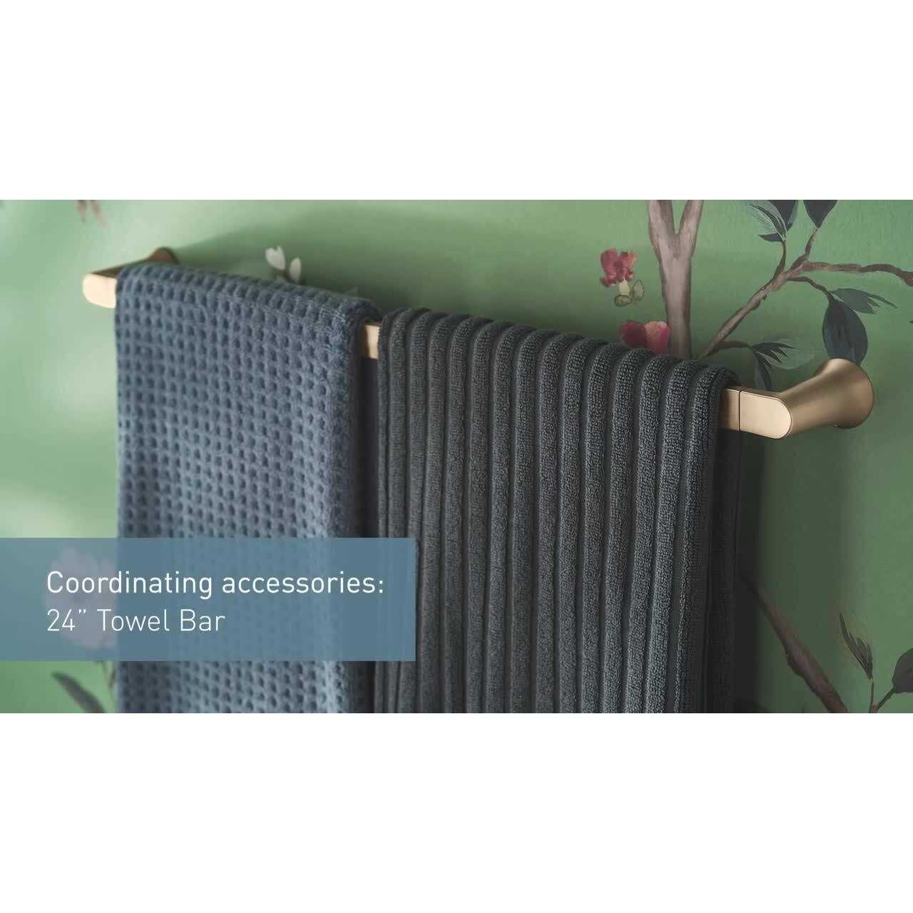 The Genta Bath Suite offers style with a dominating presence – for a look that appeals to a wide variety of residents. It is designed with user features, including curved edges and clear temperature indication and mass appeal that are essential in the multi-family and hospitality marketplaces but also provide that same appeal in residential applications. Matching accessories create a fully coordinated look throughout the bath. Color: Bronzed Gold.