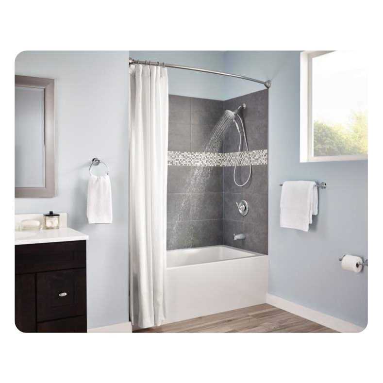 From finishes that are guaranteed to last a lifetime, to faucets that perfectly balance your water pressure, Moen sets the standard for exceptional beauty and reliable, innovative design. A little change in the décor can make a noticeable and pleasant difference to the ambiance. Enhance your bathroom décor with Double Shower Curtain Rings. These classic shower curtain rings are an all-in-one solution to hanging a decorative shower curtain from a bath liner. Simply attach them onto your curtain rod and you have a hook on either side of the rod, and the hooks are offset so that the bath liner is hidden from view. Hooks easily roll across the curtain rod on the decorative ball bearings. Separates decorative curtain from liner. Smooth rolling ball bearings eliminate snagging, tugging and pulling of the curtain, fits most shower curtain and rod types. Offset hook design helps hide liner from view. Corrosion resistant.