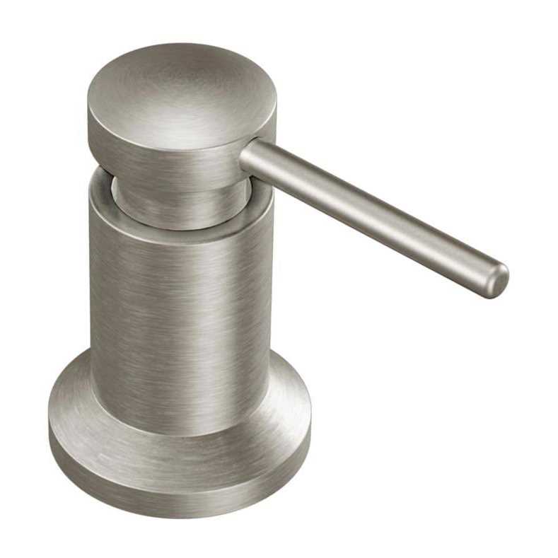 Moen · 18 oz.Add style to your bathroom with this Moen 3942 Soap and Lotion Dispenser. It has a chrome finish that is highly reflective for a mirror-like look that works with any decorating style. The chrome soap dispenser is available in several different colors to give you options to best match your decor.