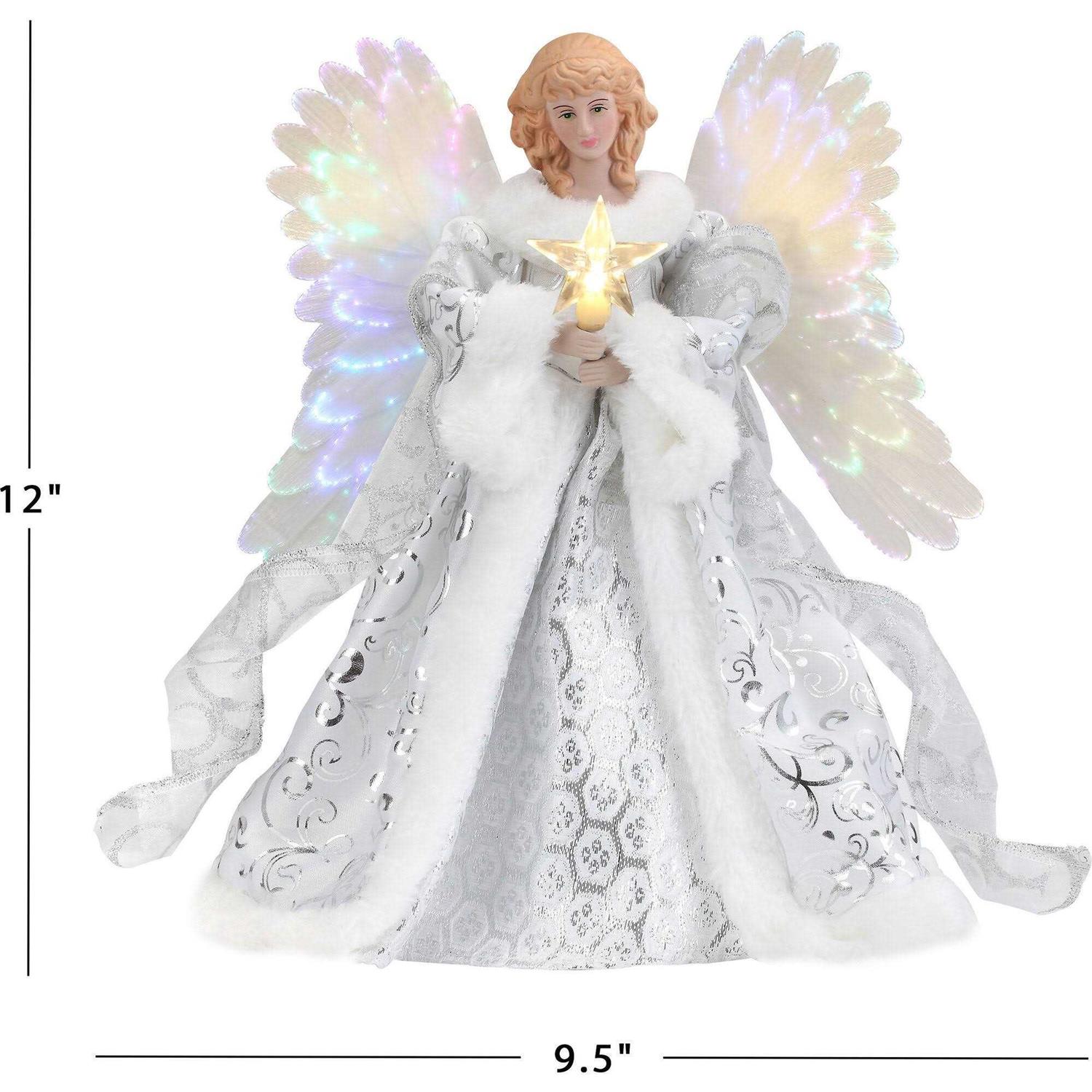 - 12in tall angel dressed in a flowing outfit for use as a tree topper.
