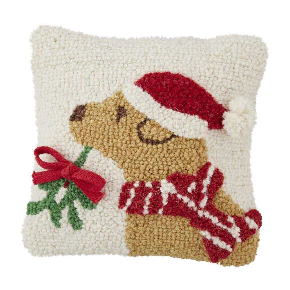 Mud Pie Hook Wool Christmas Dog Pillow, Brown