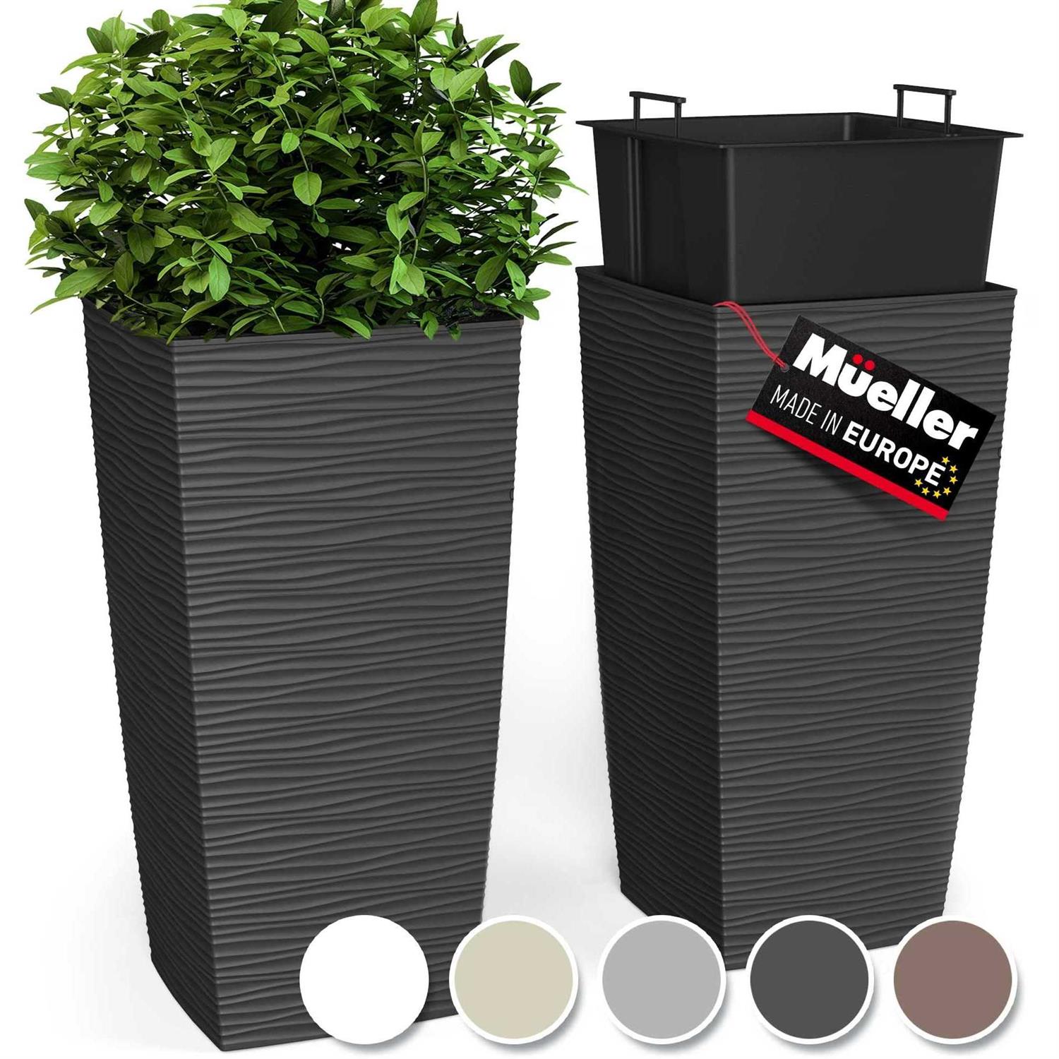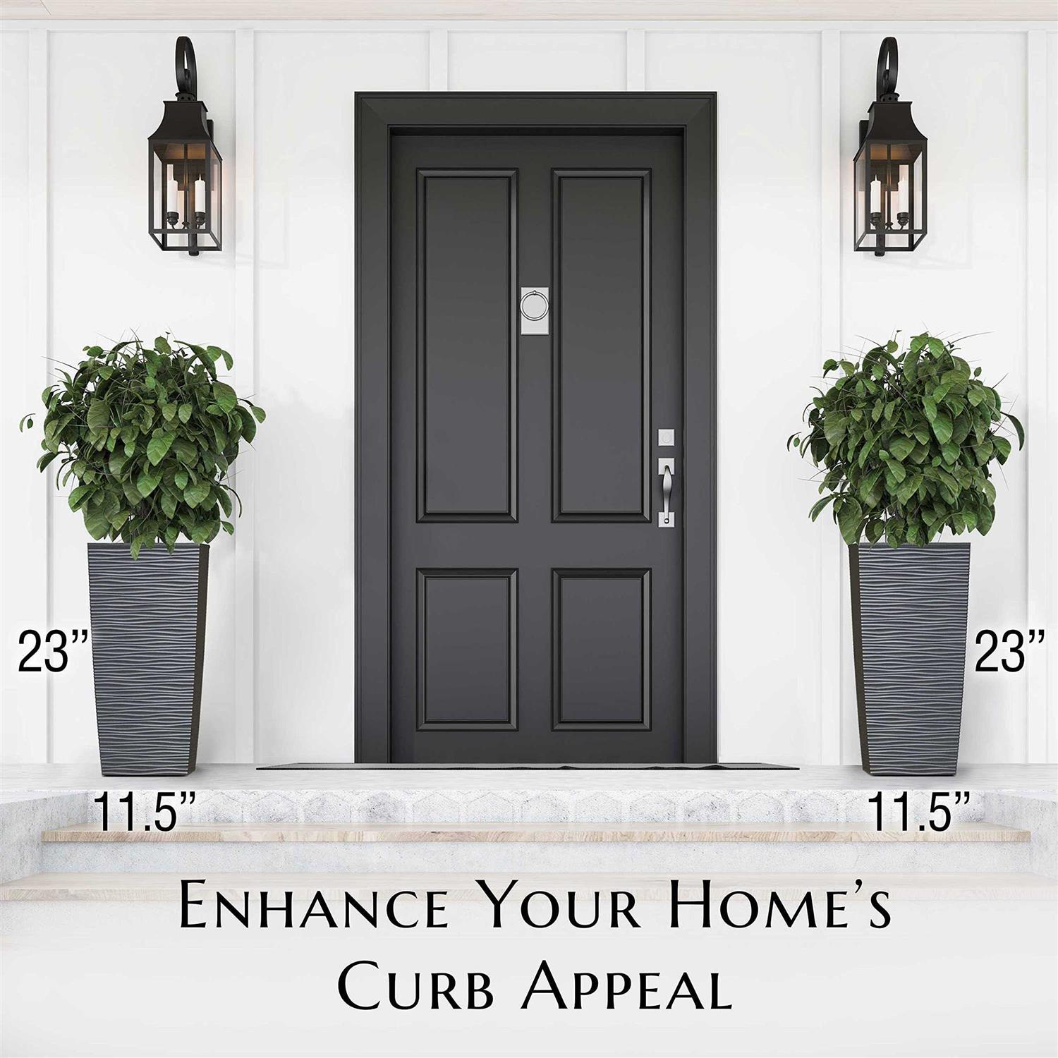 Janska by Mueller M-Resin Heavy Duty Tall Planter, Indoor/Outdoor Grande Plant, Tree, Flower Pot, 2-Piece Set, 24”, Modern Design, Built-in Drainage