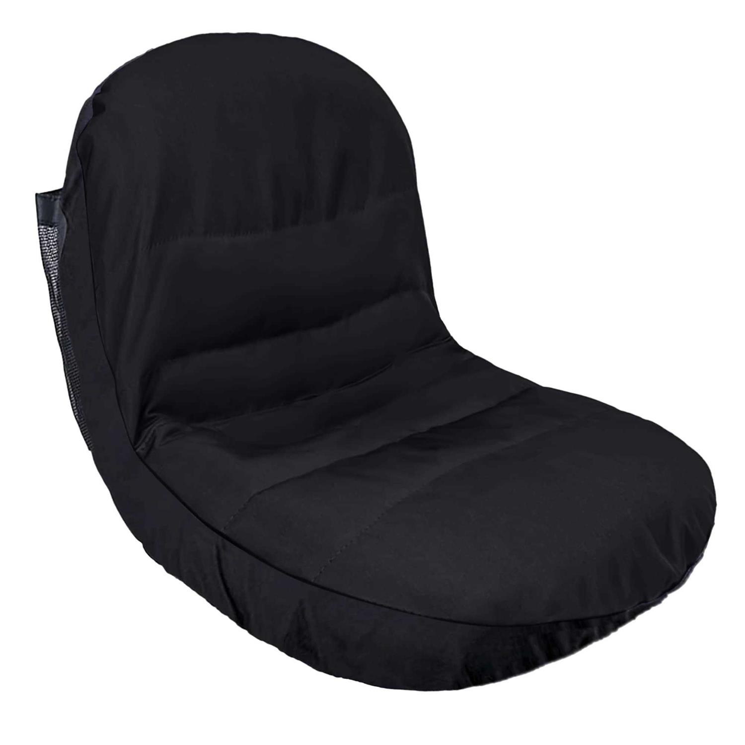 Riding Lawn Mower tractor Seat Cover, Durable Polyester Oxford Waterproof Seat Cover Compatible with John Deere, Craftsman, Cub Cadet, Kubota,husqvarna 3 storage pockets at the back of the seat cover for any items you may need while mowing like gloves, tools, rags, pruners,trash bag (2 drink holder ||1large storage pocket for pilers and tools etc|| oxford cloth makes it non skid surface ||cushioning give non slippery surface and extra comfort to your mowing experiance 1. Medium fits tractor seat backrests 12.5″ – 14″H without armrests ||Dont worry about cracked seats just cover your seat with these seat cover and they are looking new again Waterproof ||Made of 600D oxford cloth , water resistant ,heat resistant , not slippery Features: Medium fits tractor seat backrests 12.5″ – 14″H without armrests. .600D oxford cloth with high performance waterproof, abrasion and weather protection. Convenient back pockets keep tools and gear within reach. Protects new seats and makes old seats look new again.Keep your seat in excellent condition for years. Included storage bag,easy to store. Three convenient pockets keep tools and gear within reach, it features two drink holder pockets and one large storage pocket (big enough to store pliers etc). Elastic cord in bottom hem for a custom fit Dont worry about your cracked seats now, just put these cover up and your old seat are looking new Some cushioning that makes sliding less likely NOTE: In order to fit your tractor seat perfectly, the size of our seat cover is designed according to the size of the tractor seat. During the installation process, each place of the seat cover needs to be carefully stretched, so that it can be better installed the seat cover and fit the tractor seat.
