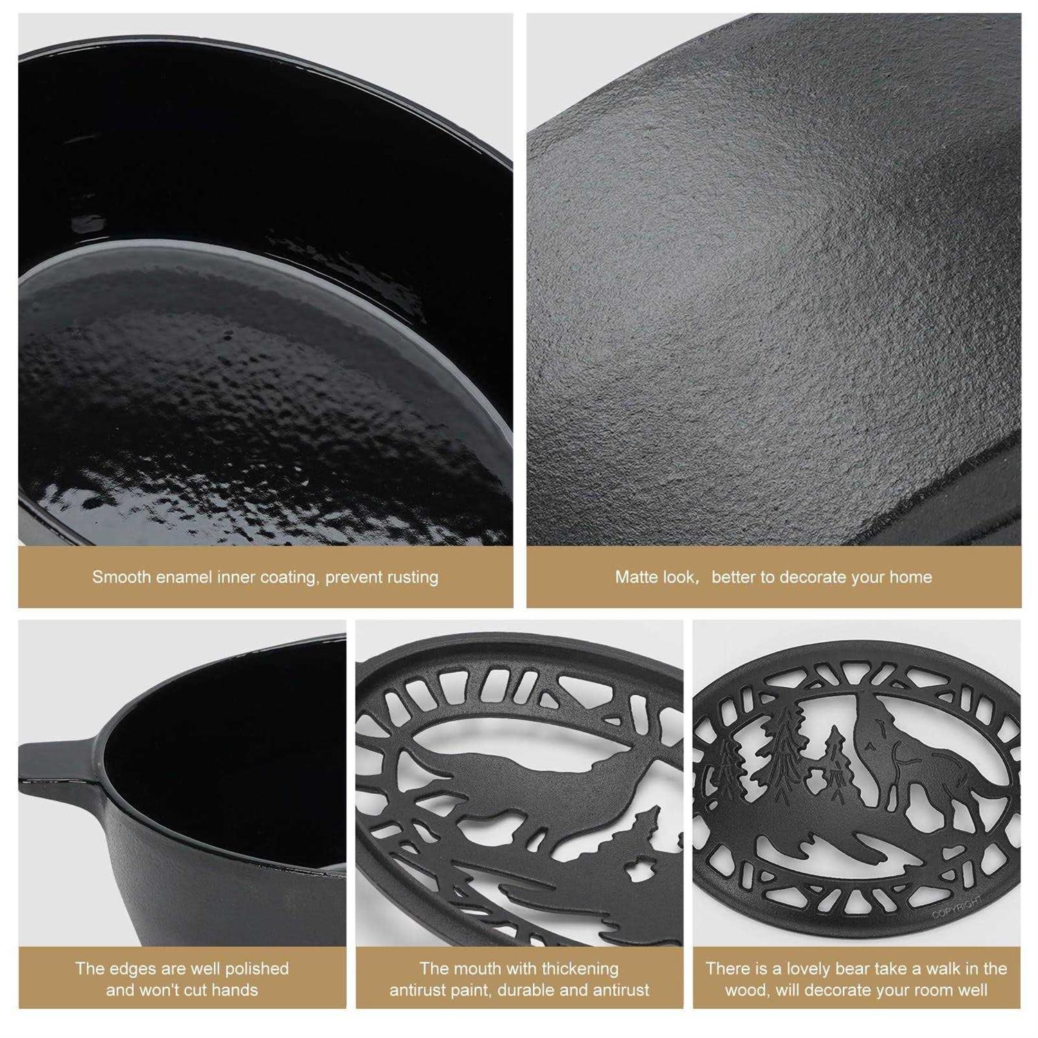 [Rust-Resistant]Our wood stove steamer is made of heavy duty cast iron. With smooth enamel inner coating, prevent from rusting. Total 9 LB, prevent children and pets from moving [2.8L/2.5Qt Large Capacity]This fireplace humidifier with large capacity, not need add water frequently when fireplace wood burning. The cover with hollowed bear pattern convience to add water. Aromatic can be added [Easy to Clean] The Lid can be remove, smooth enamel inner can be clean with wet cloth. The sharp objects will scratch cast iron steam pot.Please do not put it in strong corrosive, strong acid water. [Natural Wood Stove Humidifier] This cast iron steamer for wood stove no electricity required, eco-friendly and energy saving. As long as your fireplace temperature rises up, the steam will be produced, increasing air humidity quickly. [Copyright Pattern] The lid of wood stove steamer with a lovely bear take a walk in the wood with matte look. Retro and witty, will decorate your room well. And will be a perfect gift for Christmas, Thanksgiving and so on. This is the wonderful wood stove steamer for your home! Compare with the traditional humidifiers, it no electricity need, natural increase the air humidity, alleviates the skin to be dry, cough and nose bleeding. No noisy. Easy to clean and refill. Simple structure makes it not easy to breed bacteria. With Matte outside look and lovely bear take a walk in the wood pattern, it will better to decorate the home.Why don’t choose it? Start a only for winter romance!