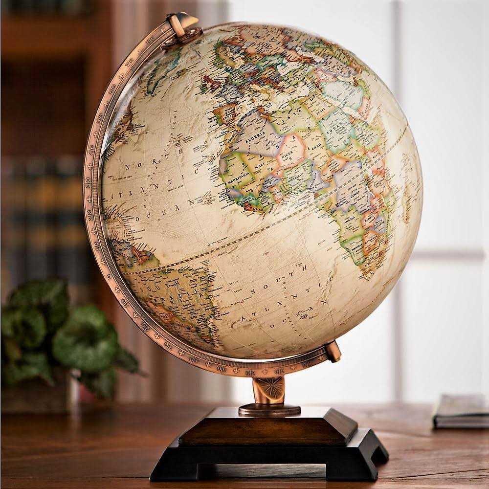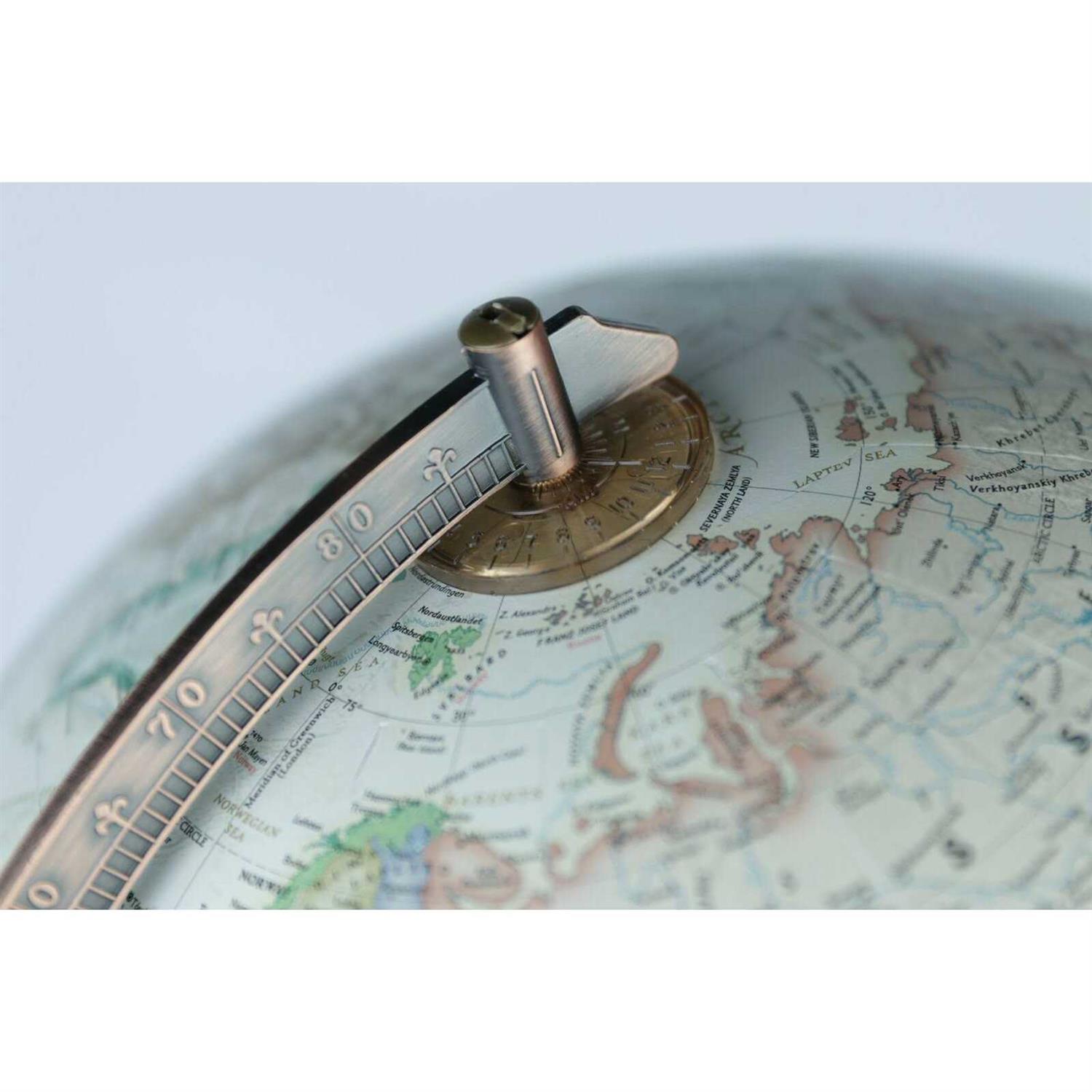 • The globe features a raised relief and time dial at the North Pole.