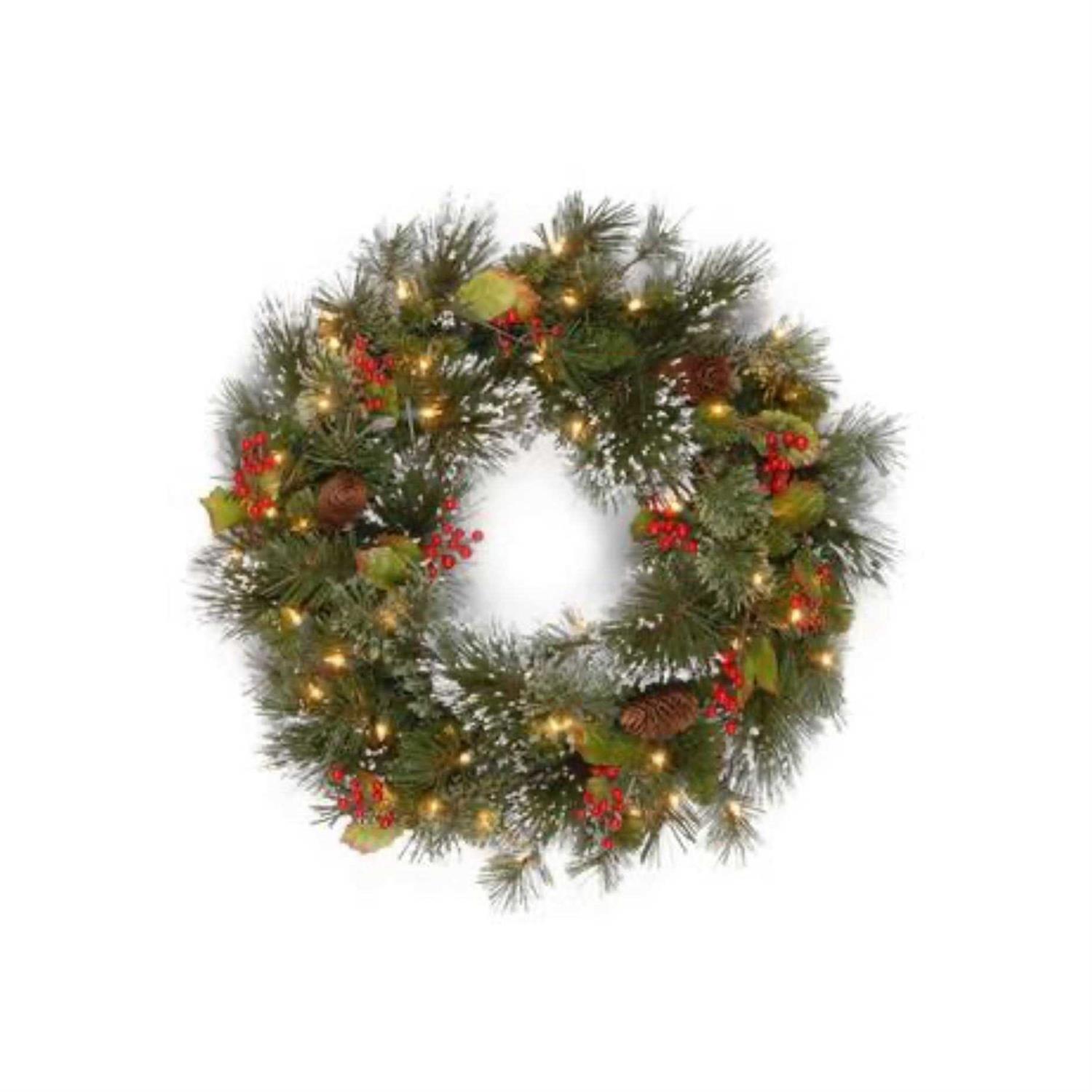 National Tree Wintry Pine Wreath with Warm White LED Lights 24″