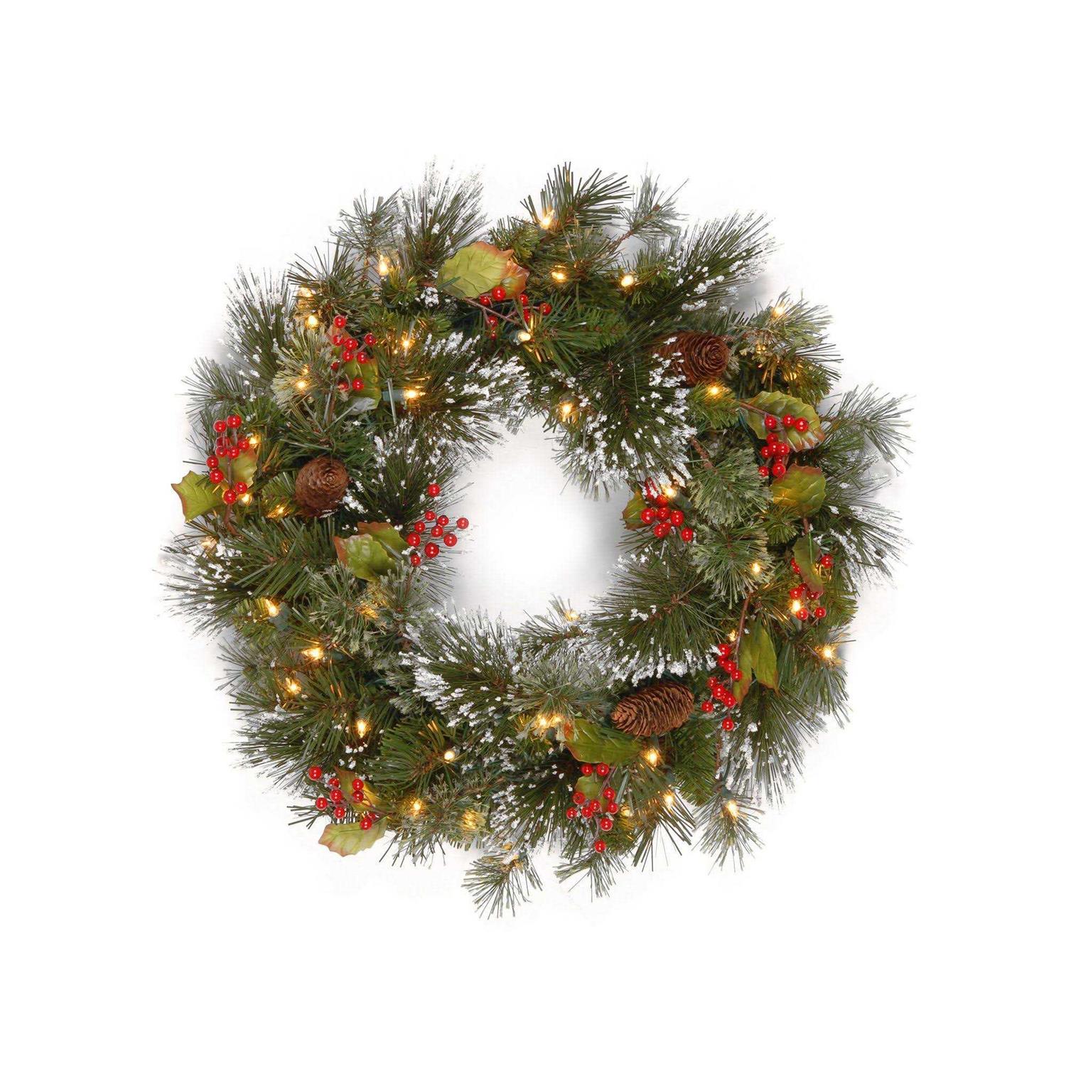 National Tree 24″ Wintry Pine Wreath with Clear Lights
