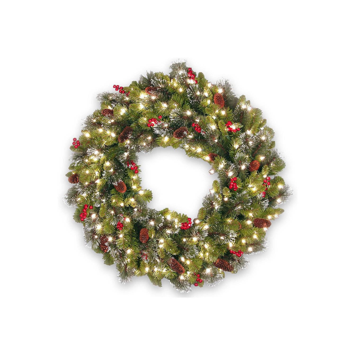 National Tree Crestwood Spruce Wreath with Clear Lights 36″