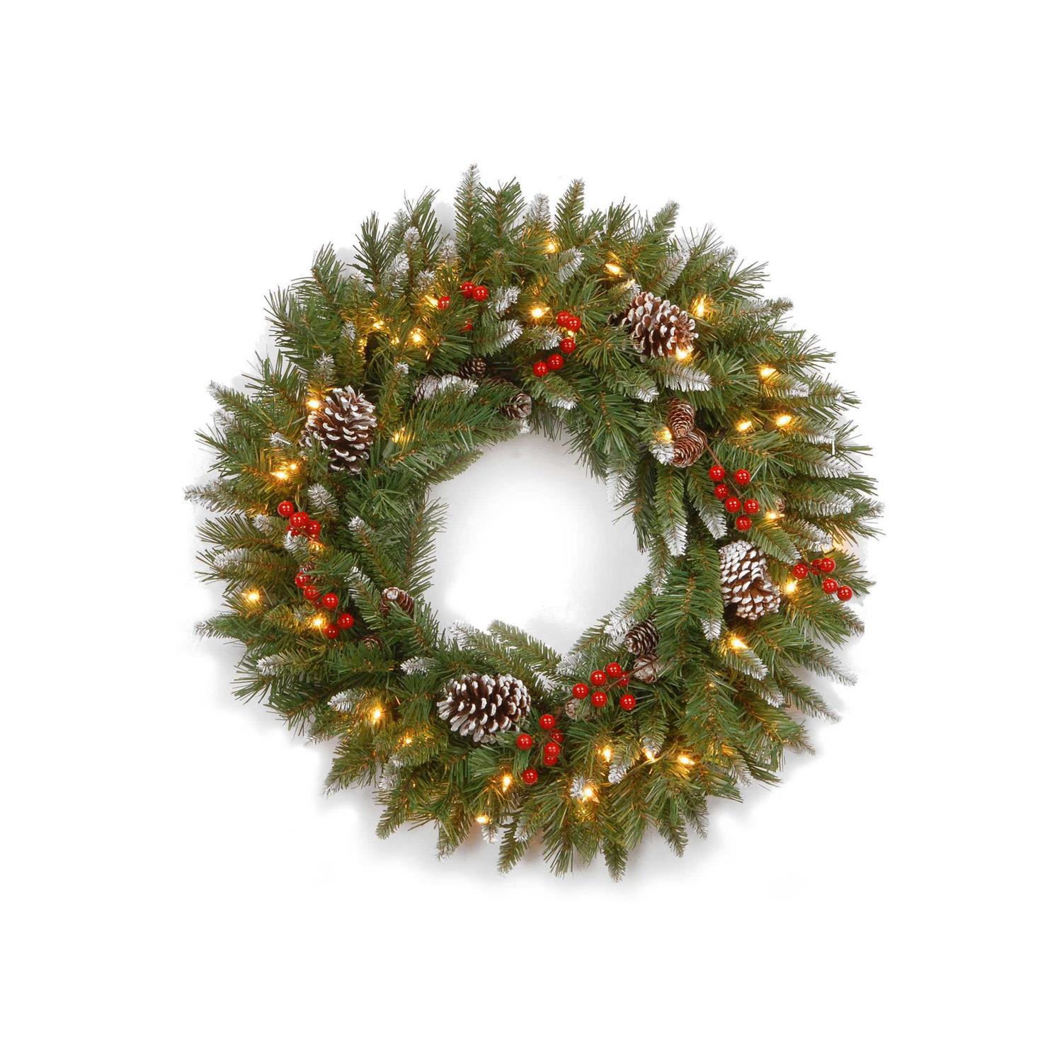 National Tree Frosted Berry Wreath with Clear Lights 30