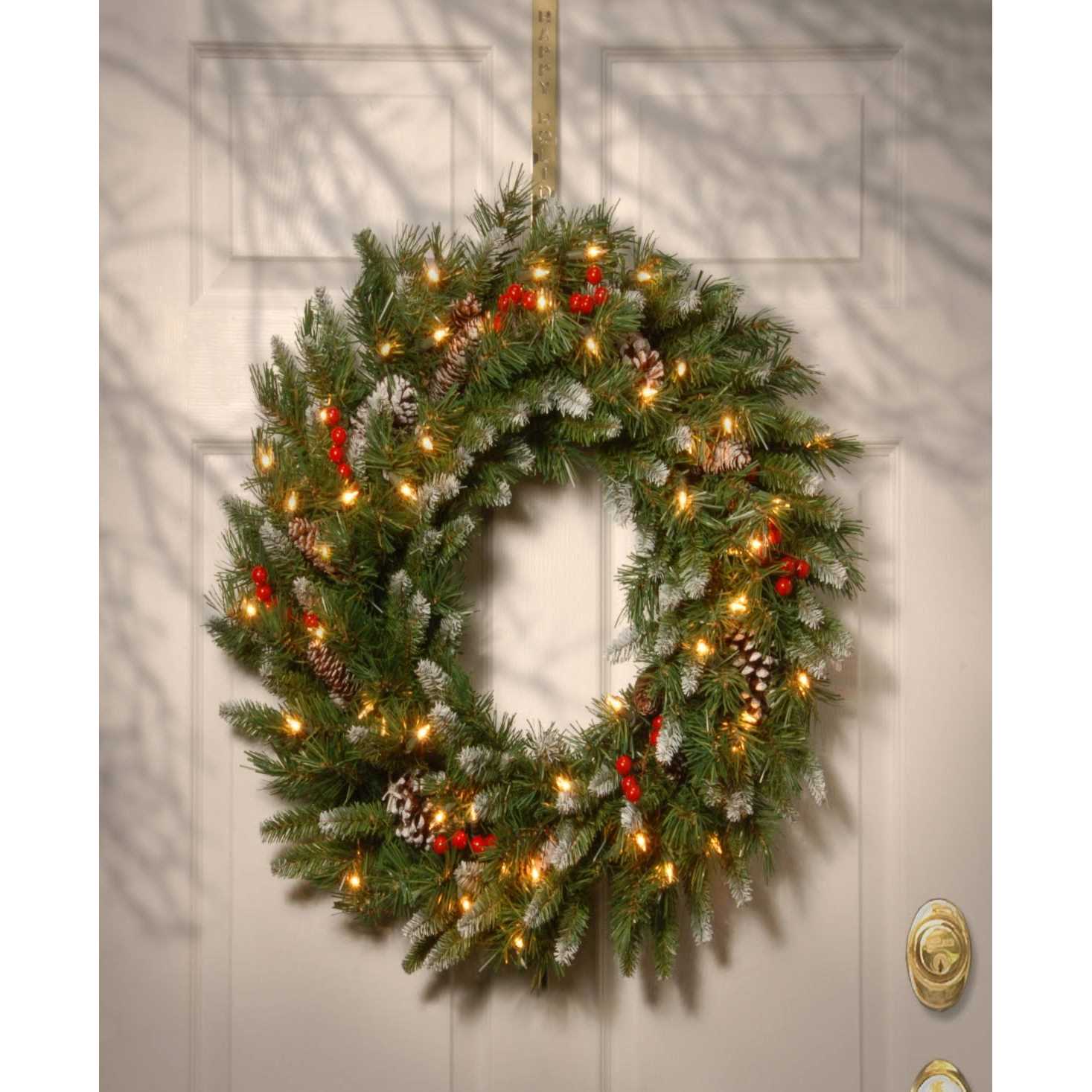 Deck the halls with a cheerful Christmas wreath. Frosted Berry Pre-Lit Wreath is bursting with green faux-pine branch tips,pine cones,and red berries for a charmingly festive look the remains looking fresh year after year. The pine cones and branch tips are frosted for a fresh-fallen snow look. The PVC used to create the wreath is naturally allergy-friendly and resistant to flames. 275 individual branch tips give the wreath its shape. The wreath is pre-lit with a string of 100 UL-listed clear white lights that won’t suddenly darken if one bulb goes dead. Spare bulbs and fuses are included. National Christmas Products isn’t quite Santa’s workshop,but they’re getting closer with each passing year. A variety of holiday decor products are offered by the company,including wreaths,garlands,Christmas trees,and more. Each of the greenery products are artificial for a long-lasting indoor/outdoor design,but feature a Feel-Real aesthetic that’s nearly indistinguishable from a fresh-cut tree.