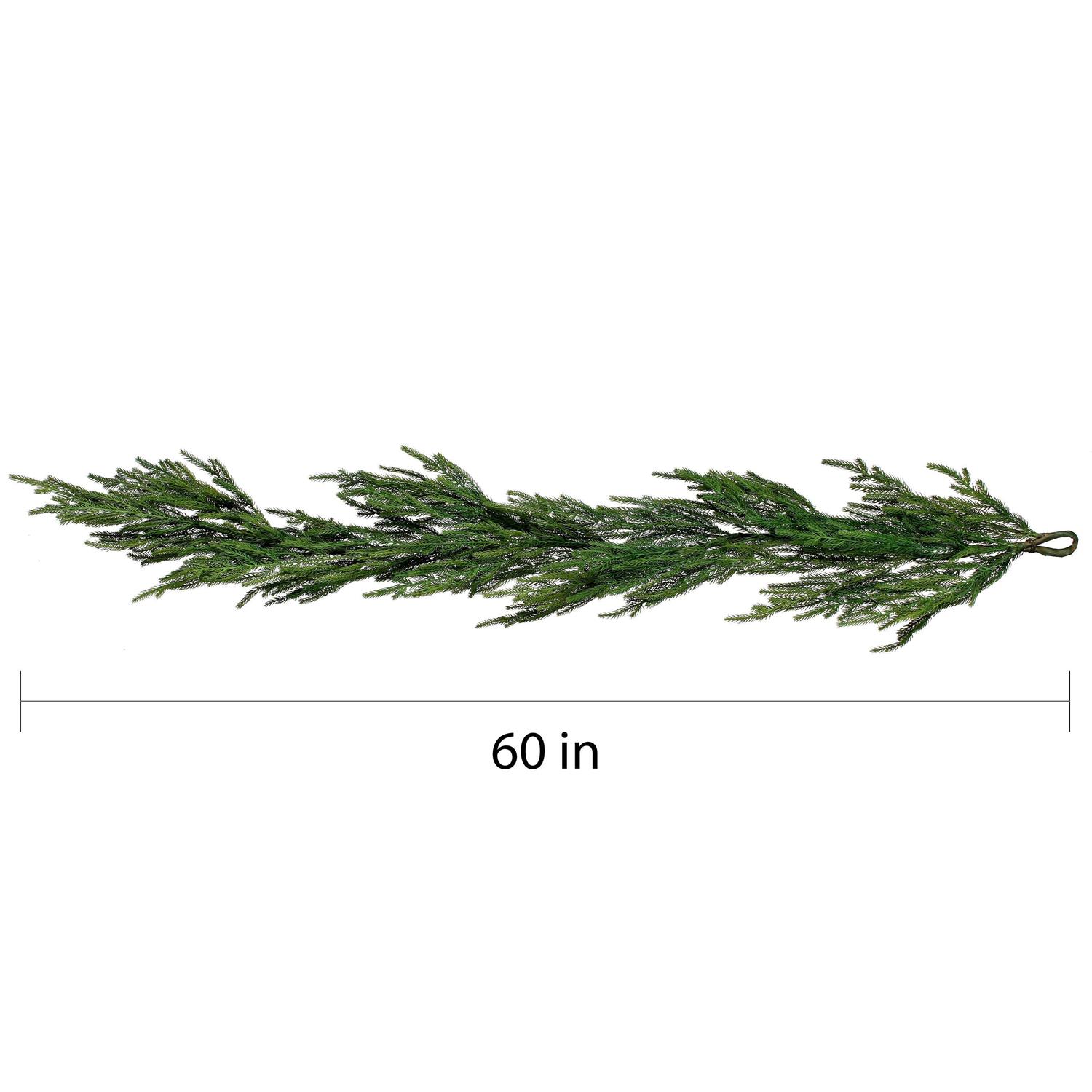 Natural Touch Norfolk Pine GarlandDimensions: 60″ Long x 4-6″ WideSo festive for your holiday home decor and winter wedding centerpieces! This lush green Norfolk pine garland is so realistic, it looks like it came straight from the forest that day. Add pinecones, ornaments, or berries to customize perfectly for your displays.