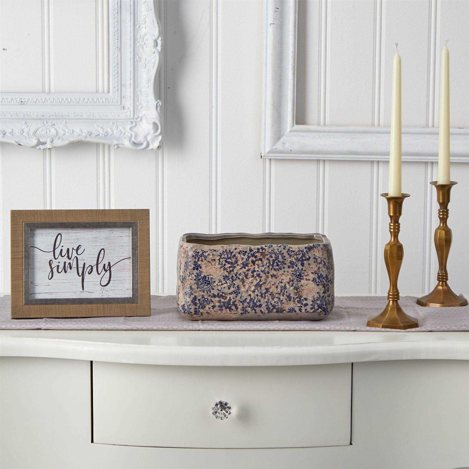 The vintage ceramic planter has a homey feel with its palette of flowers against a rugged backdrop. DIY and have fun mix-matching for a country chic look that delivers that fresh farm to home style. No drainage holes and indoor use only., Zawadee, Nearly Natural, 10” Tuscan Ceramic Rectangle Planter.