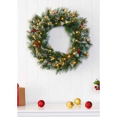 Nearly Natural 24″ Frosted Swiss Pine Artificial Wreath with 35 Clear LED Lights and Berries