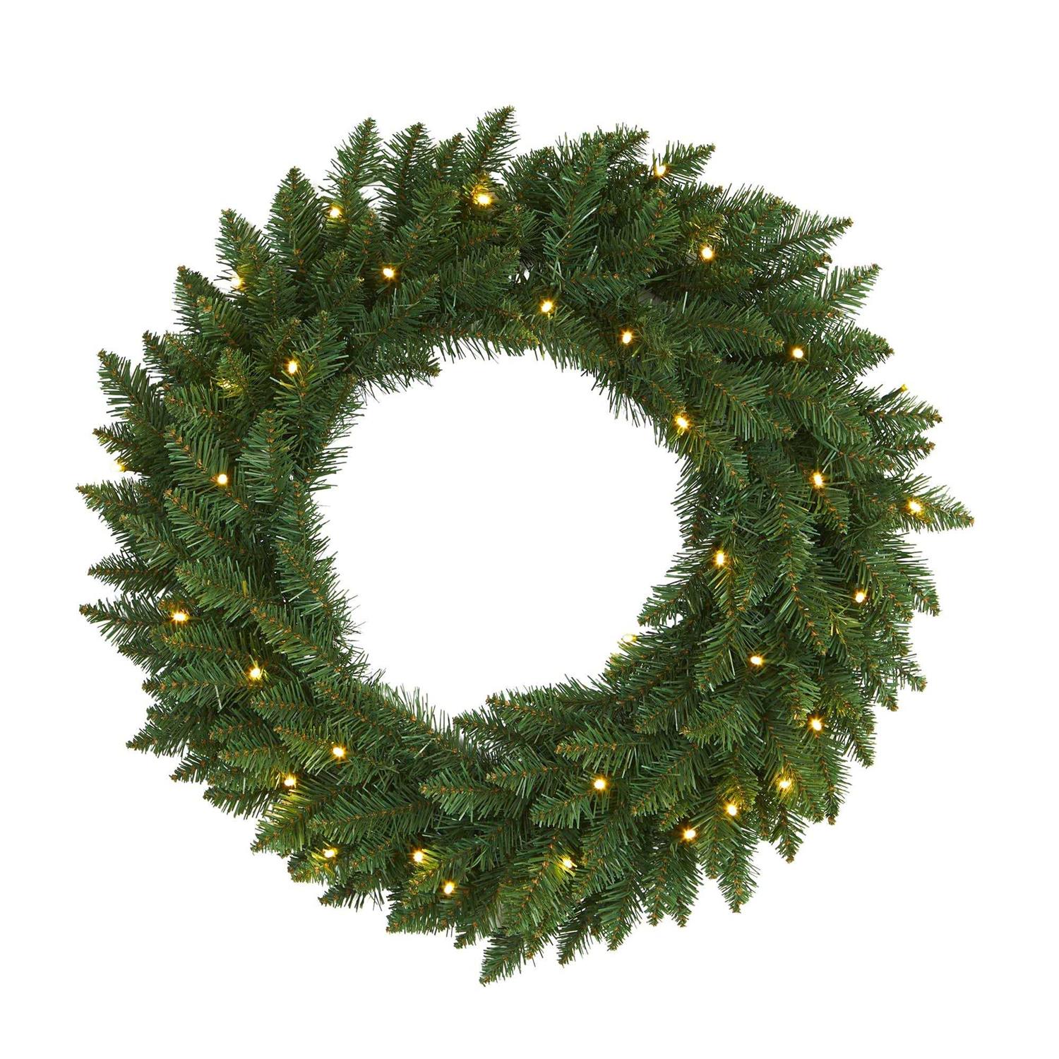 Nearly Natural 24-in Pre-Lit Indoor Battery-Operated Green Pine Artificial Christmas Wreath | W1110