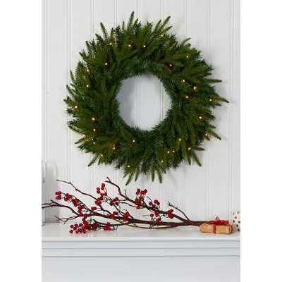 Nearly Natural 24in. Long Pine Artificial Christmas Wreath with 35 Clear LED Lights