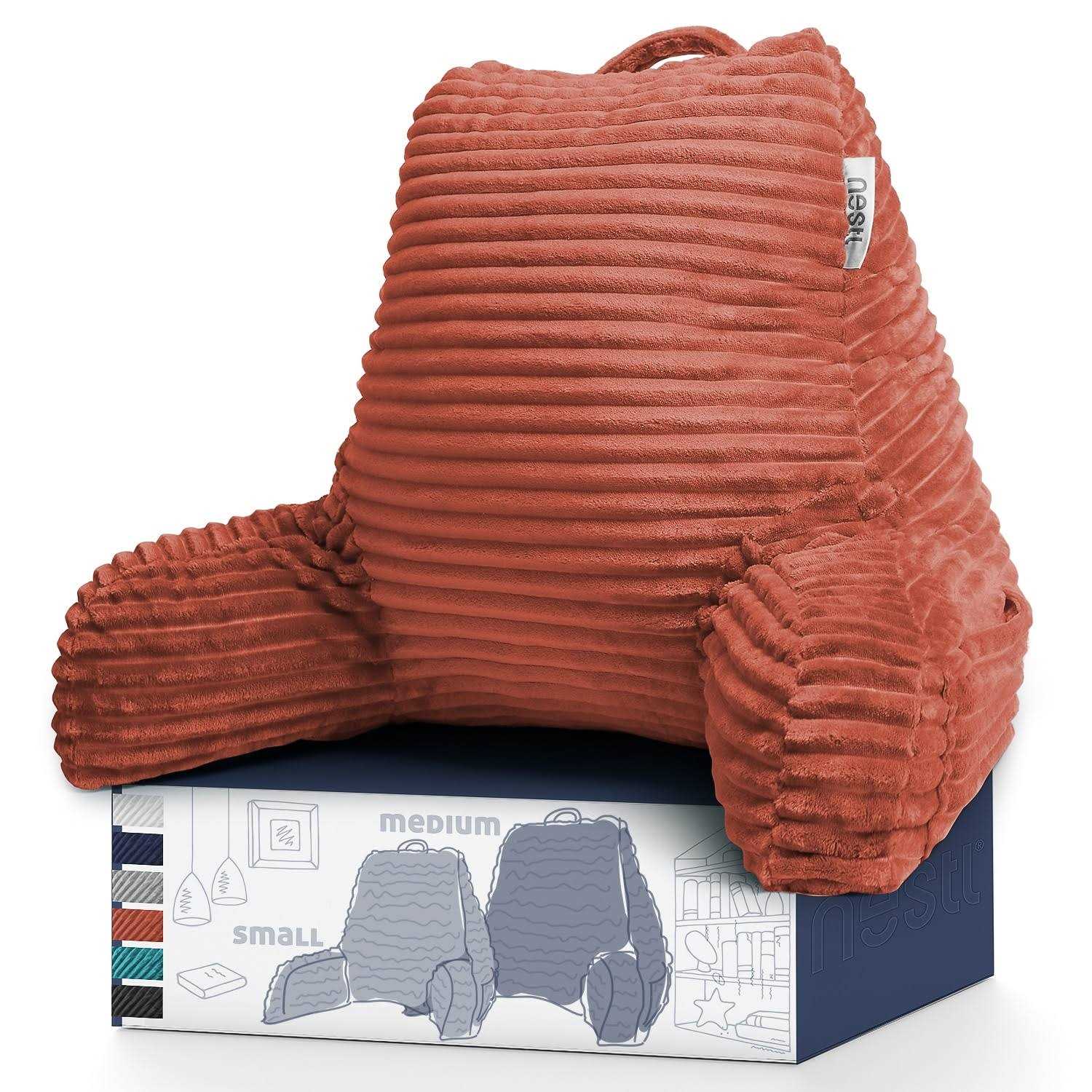 The Nestl Reading Pillow is unlike any back pillow youve tried before. The perfect size for kids and teens, our sturdy, supportive bed rest pillow will envelop you with cozy warmth while you read in bed or watch TV! This backrest pillow will envelop you in heavenly comfort as it cradles and cushions every part of your body, supporting your head, neck, back, and even your arms. Treat yourself to this heavenly pillow. Our velvety soft pillow covers are removable and machine washable so you can relax with hot tea or coffee without worrying about spills and stains!