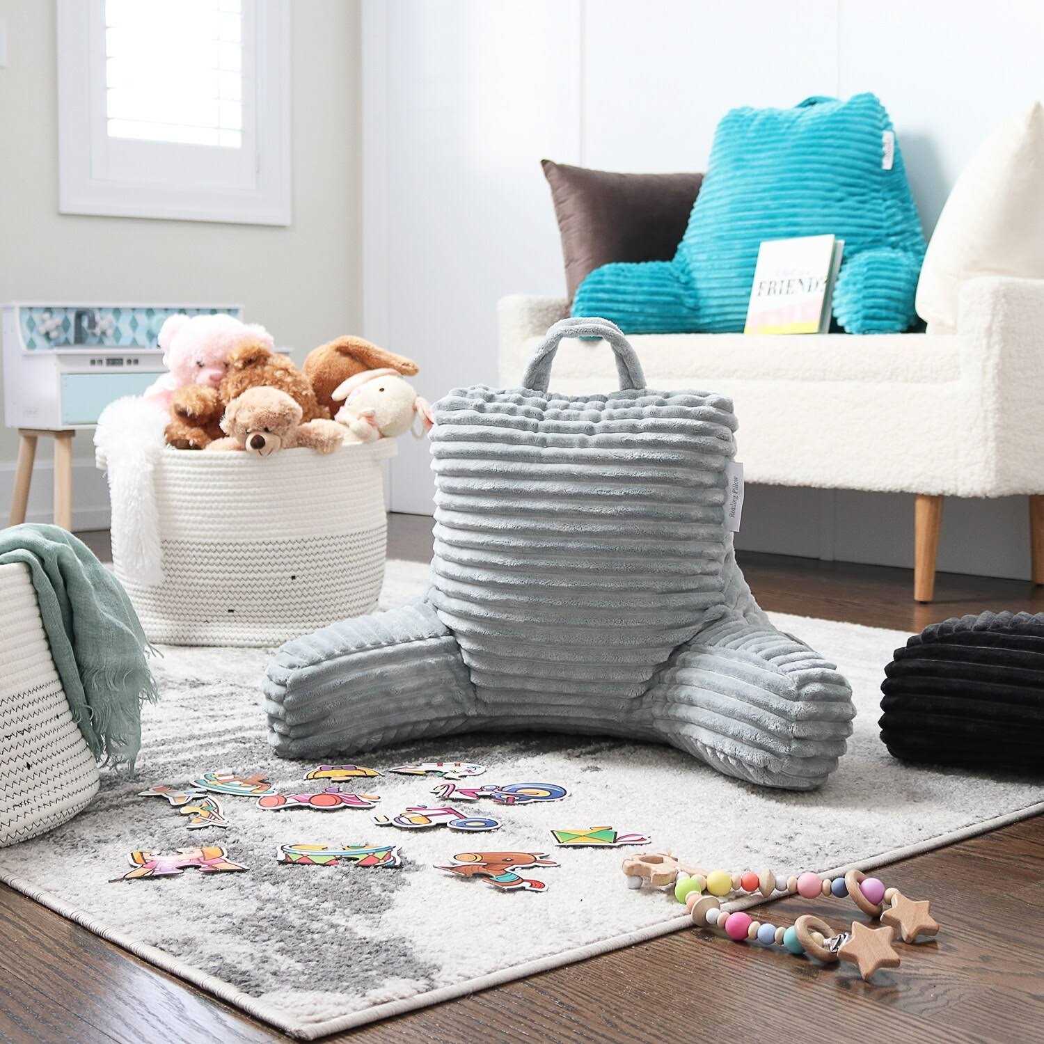 Nestl Cut Plush Striped Reading Pillow for Kids & Teens Small Back Support Pillow with Arms