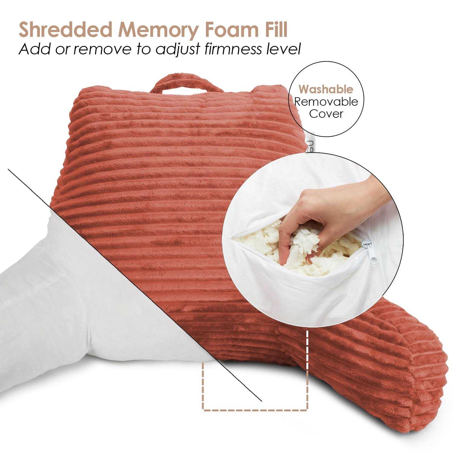 Nestl Cut Plush Striped Reading Pillow – Back Support Shredded Memory Foam Bed Rest Pillow with Arms – Medium – Misty Rose