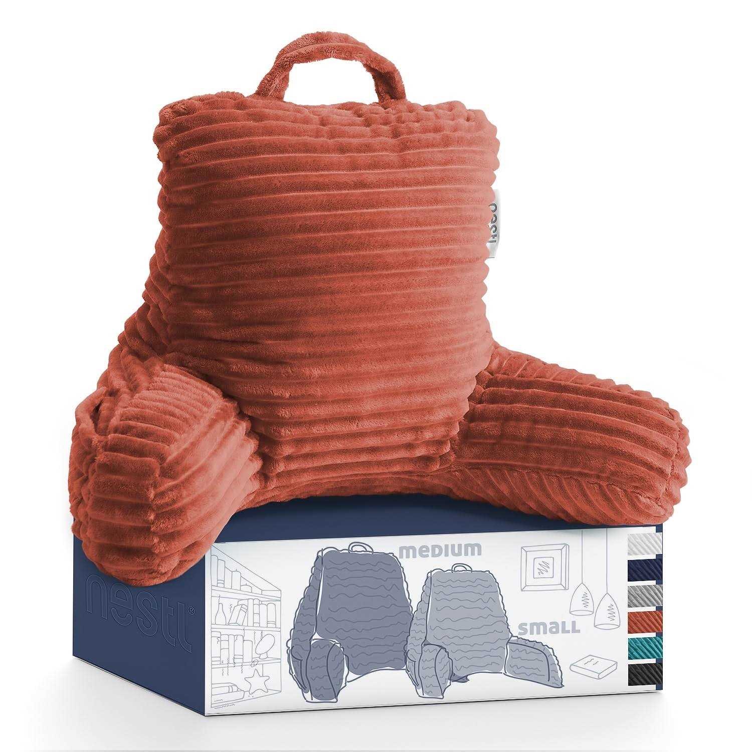 The Nestl Reading Pillow is unlike any back pillow youve tried before. The perfect size for kids and teens, our sturdy, supportive bed rest pillow will envelop you with cozy warmth while you read in bed or watch TV! This backrest pillow will envelop you in heavenly comfort as it cradles and cushions every part of your body, supporting your head, neck, back, and even your arms. Treat yourself to this heavenly pillow. Our velvety soft pillow covers are removable and machine washable so you can relax with hot tea or coffee without worrying about spills and stains!