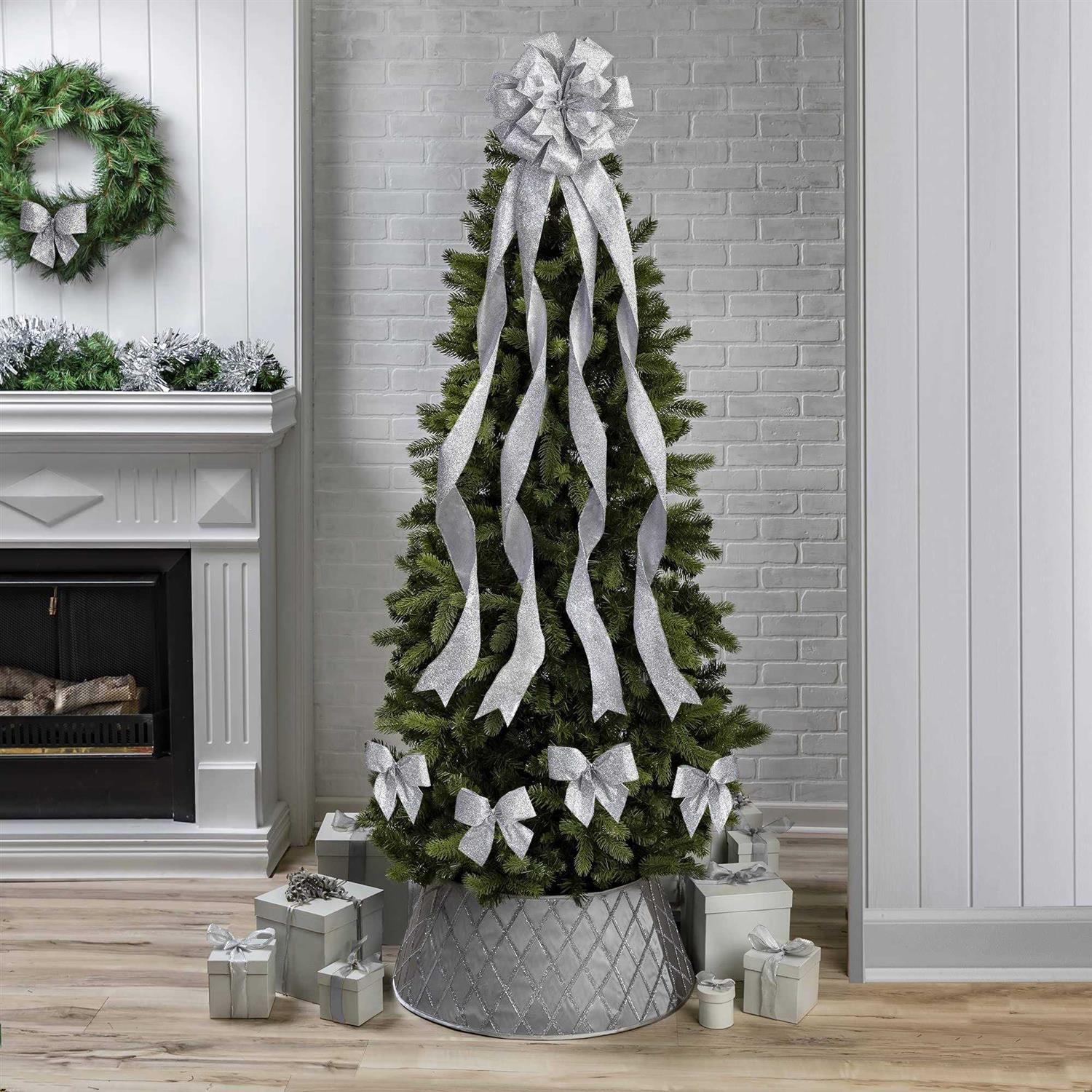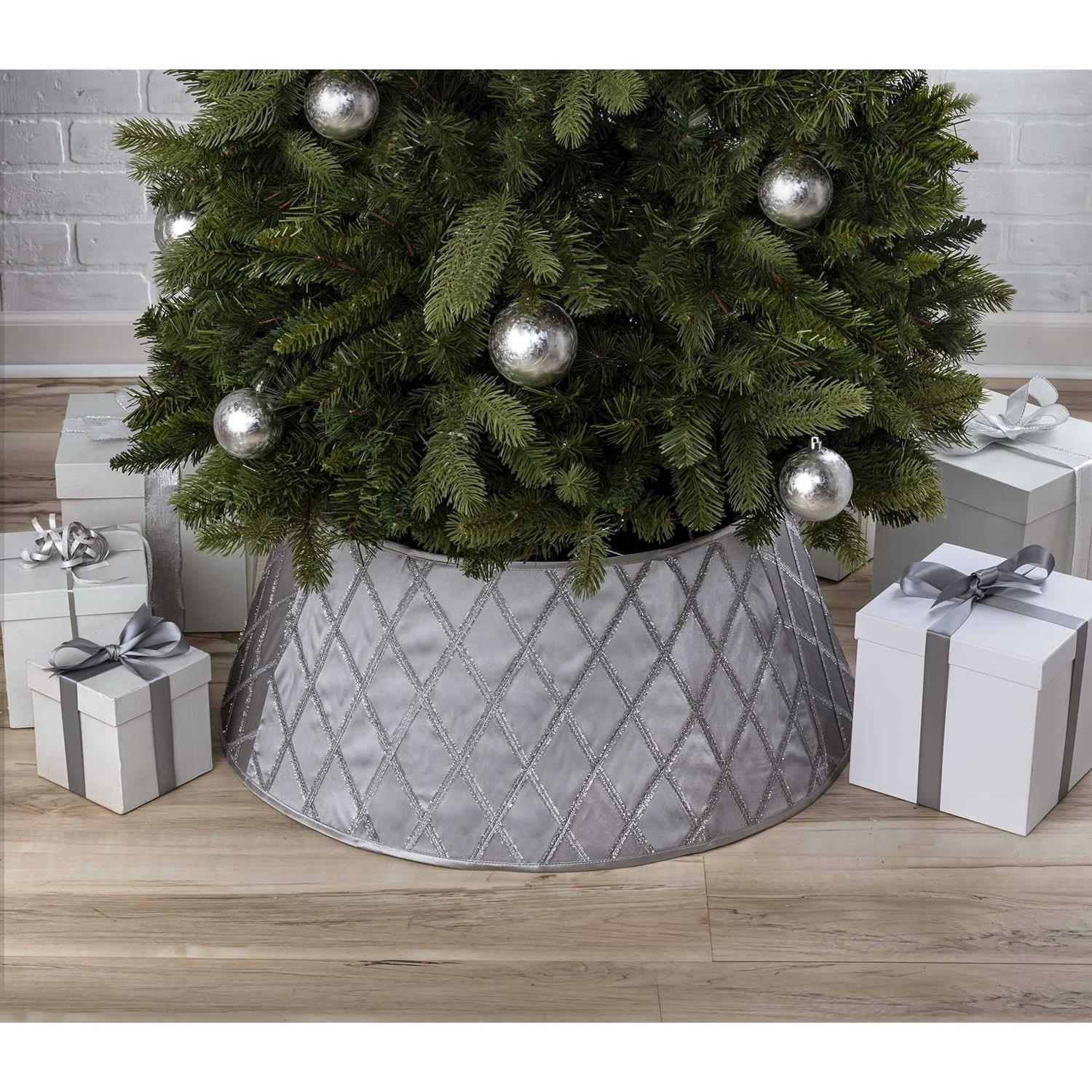 - Bring the elegance and magic of your Christmas tree decorations all the way to the floor with this beautiful silver satin Christmas tree stand band