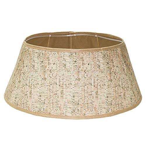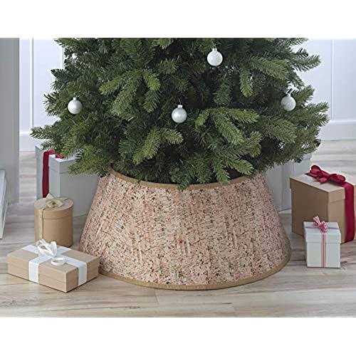 Bring the magic and cheer of your Christmas tree decorations all the way to the floor with this beautiful cork print Christmas tree stand band A great alternative to a holiday tree skirt, the tree stand band is a festive collar that easily fits around the base of your tree, but unlike a tree skirt, it does not require steaming to remove wrinkles or smoothing to ensure that it’s lying neatly A beautiful finishing touch to any natural or artificial Christmas tree Tree ring collar is 11” tall and measures 26” in diameter at the base and 18.5” in diameter at the top Christmas tree collar is made from a neutral cork print fabric and trimmed with solid tan edging The New Traditions Printed Stand Band is a beautiful alternative to a traditional Christmas tree skirt. This Christmas tree collar lets you hide unattractive tree bases and keep children and pets away from the tree bottom, but unlike a tree skirt, the xmas tree collar eliminates the need to use a steamer to remove wrinkles or worry about the material is lying smoothly. Measuring 11” tall and with a 26” diameter base and an 18.5” diameter top, this tree ring collar fits most tree stands for both natural and artificial Christmas trees. The stand band is made from a faux cork print fabric in neutral colors, designed to look like textured cork from a distance. The base and top of the tree collar are trimmed with a solid tan edging, giving it a beautifully rustic neutral look. The collapsible stand band is extremely easy to assemble – simply insert two plastic tubes through the elastic loops around the top and bottom of the tree collar and it’s ready to use. Makes a beautiful accessory for any natural or artificial Christmas tree.