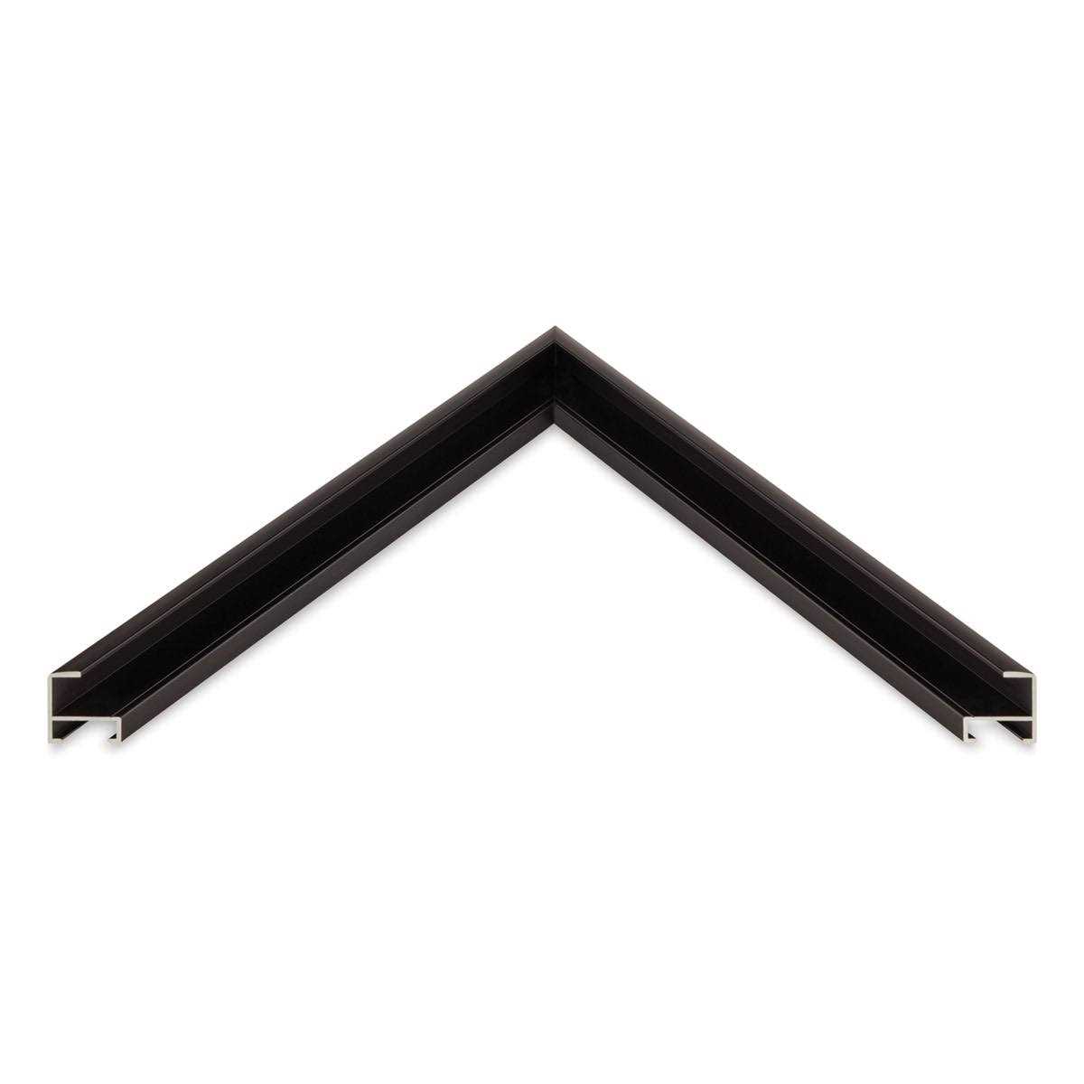 Metal section frame kits in durable anodized colors. Each package contains two sections of the same length. Buy 2 kits to make one frame. 3/4 in deep. Style 11 Flat top design with rounded face. The lip around the front edge is 3/8 in. Hardware–corner angles, eyelet hanger, and spring clips–included.