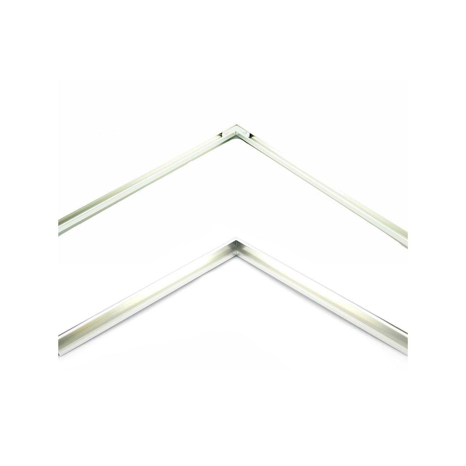 Metal section frame kits in durable anodized colors. Each package contains two sections of the same length. Buy 2 kits to make one frame. 3/4 in deep. Style 11 Flat top design with rounded face. The lip around the front edge is 3/8 in. Hardware–corner angles, eyelet hanger, and spring clips–included.