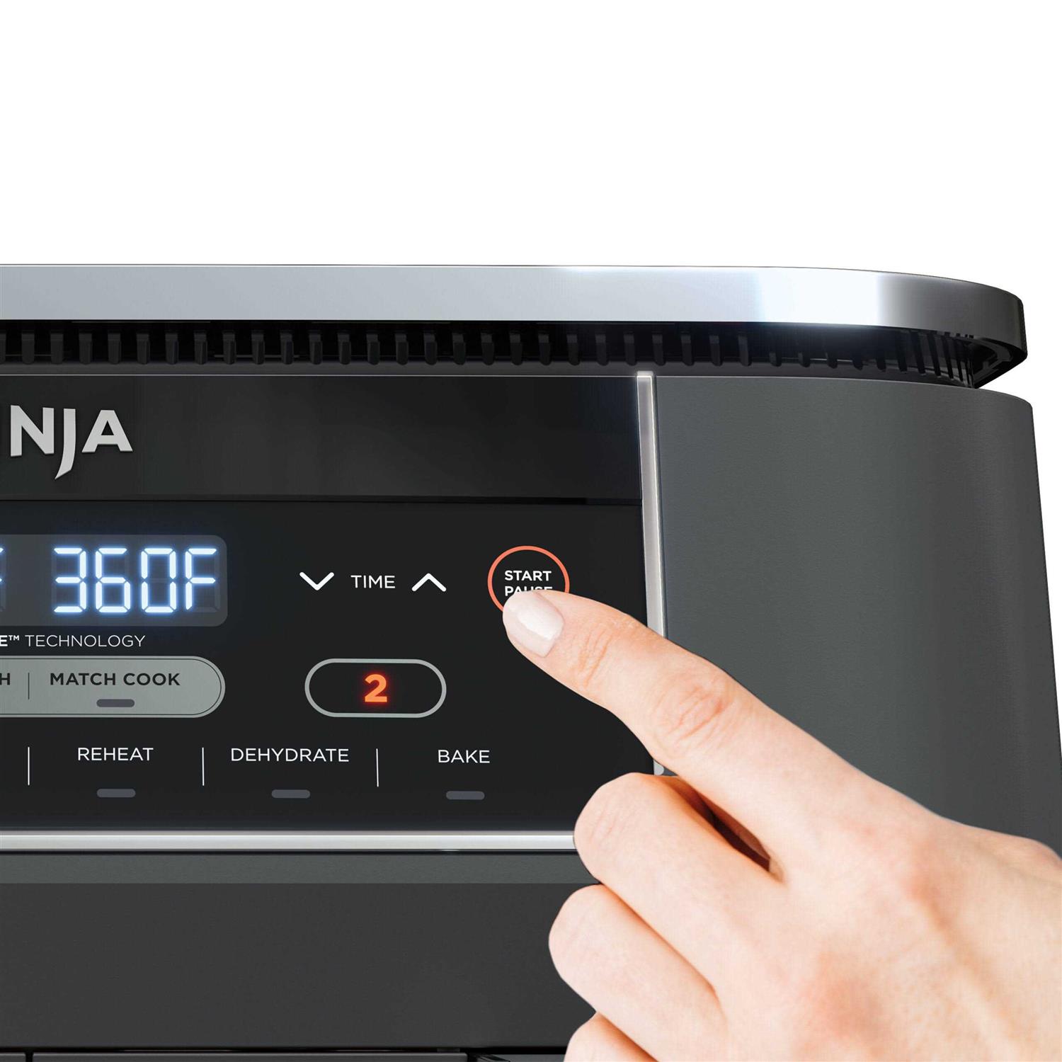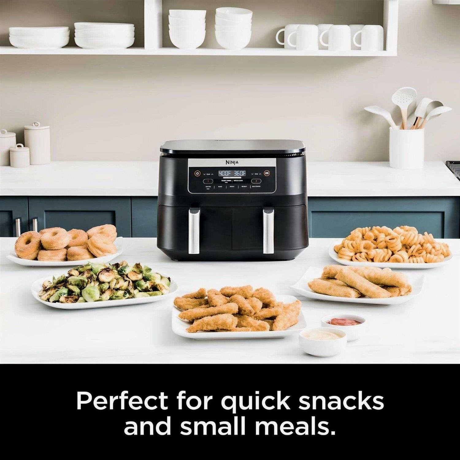 Cook smarter, faster, and healthier with the Ninja Foodi air fryer. This air fryer is equipped with two independent baskets for an 8-quart total capacity. Cook two different types of food at once and have them ready at the same time thanks to DualZone technology with Smart Finish; or use both baskets for extra-large batches of a single type of food.