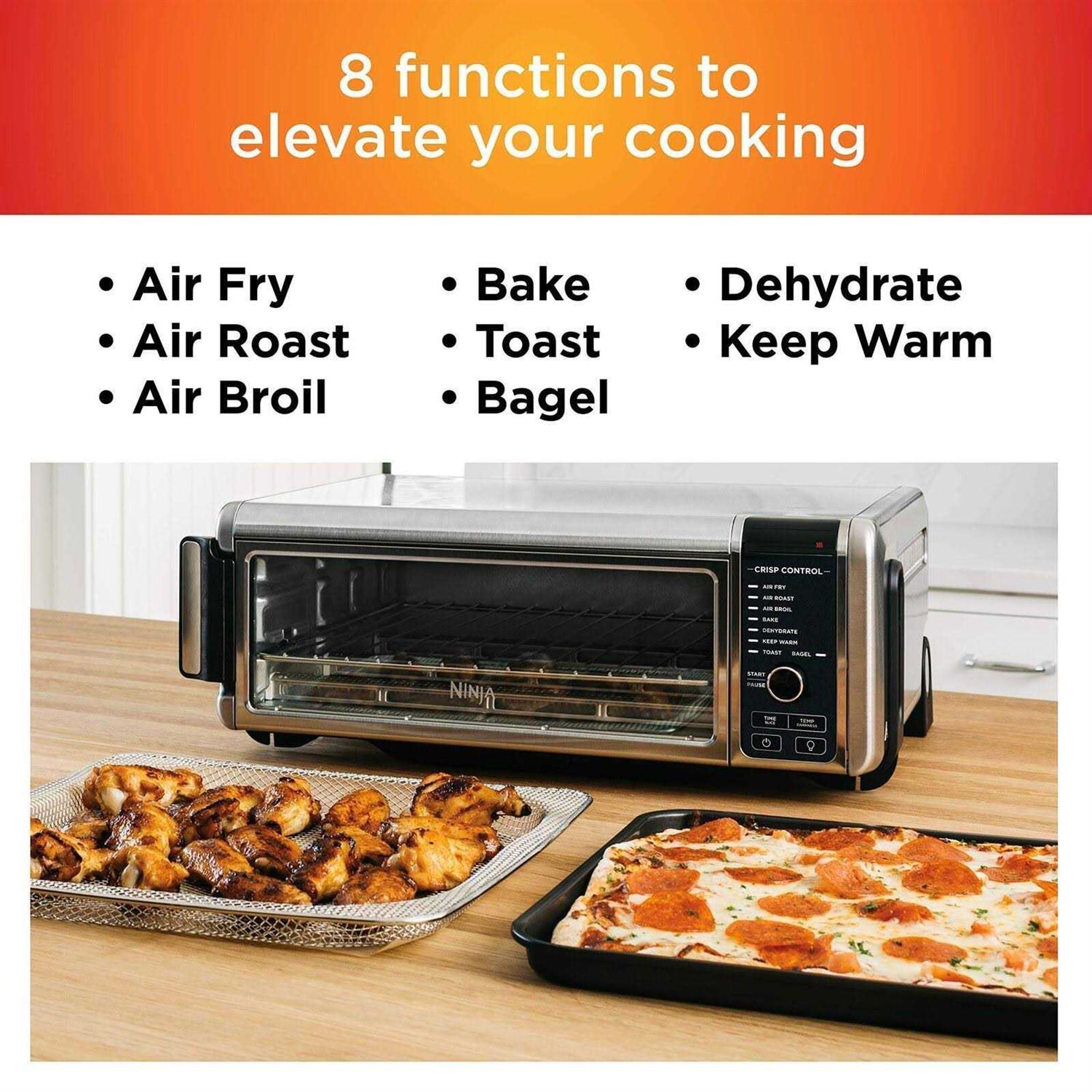 Transform the way you prepare your meals with the Ninja Foodi digital air fry convection toaster oven. This versatile appliance boasts an extra large capacity to air fry, air roast, air broil, bake, toast, and dehydrate foods for the whole family. Its space-saving design flips up when not in use so it doesn’t take up valuable counter space.