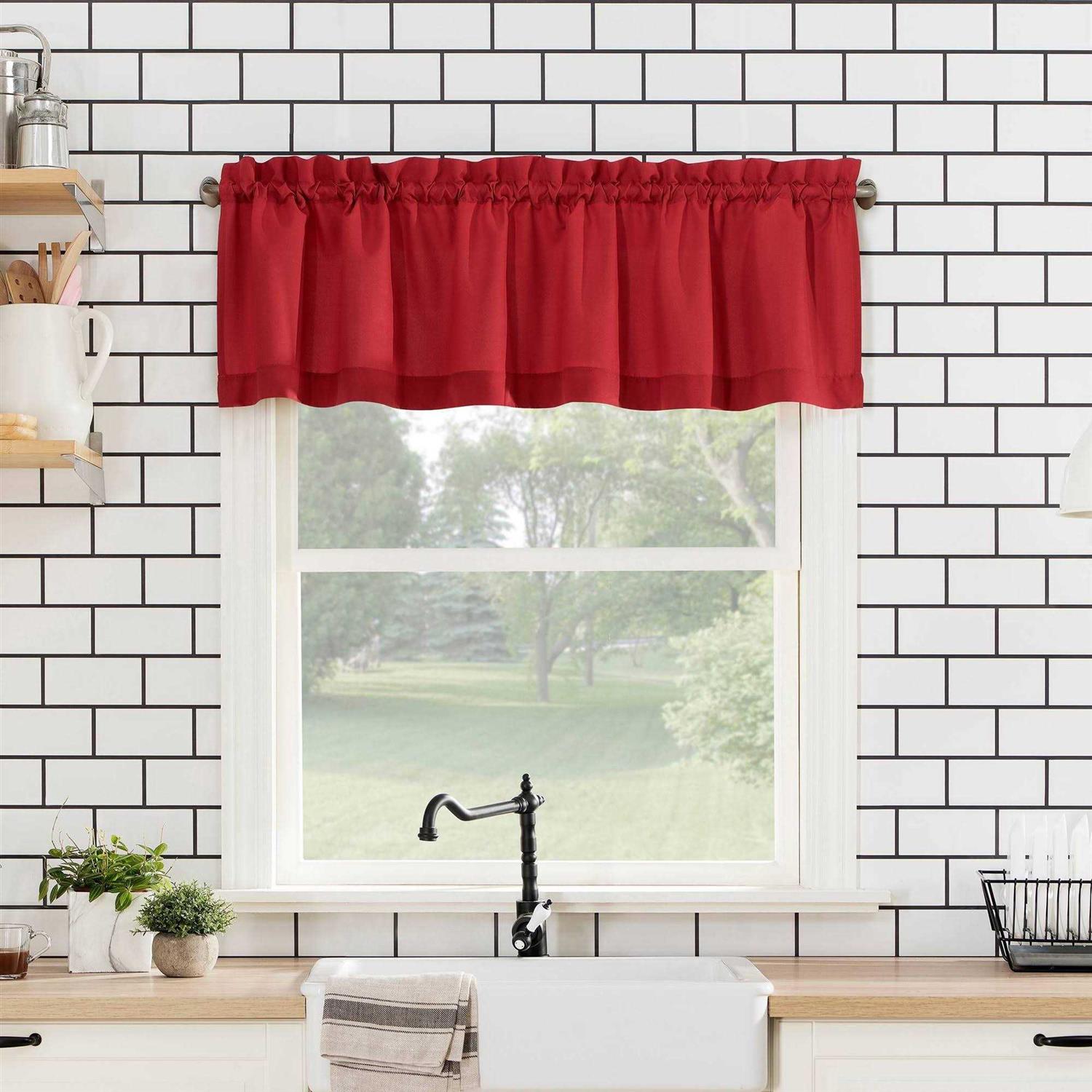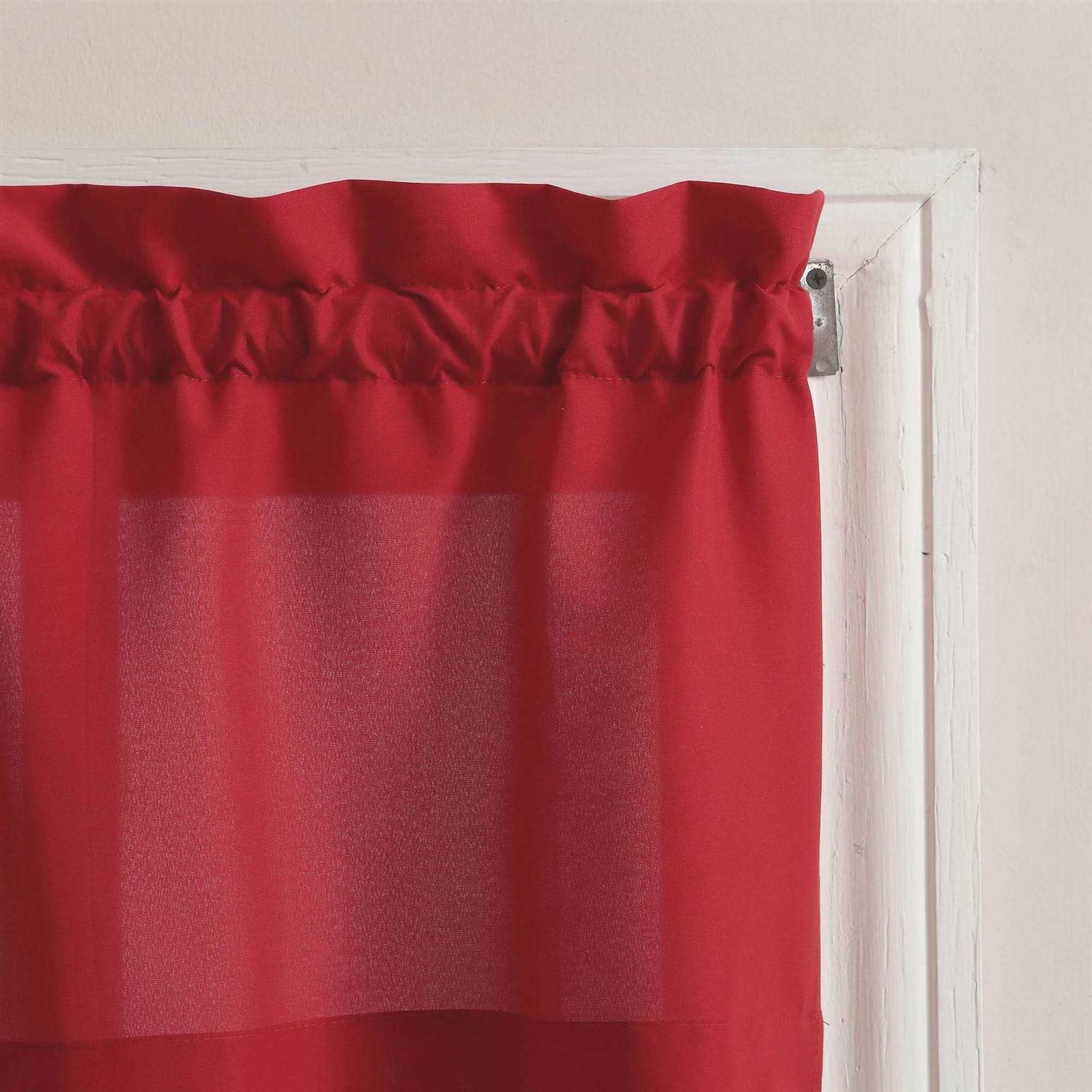 No. 918 Martine Microfiber Semi-Sheer Rod Pocket Kitchen Curtain Valance and Tiers Set – Red – 54″ x 24″