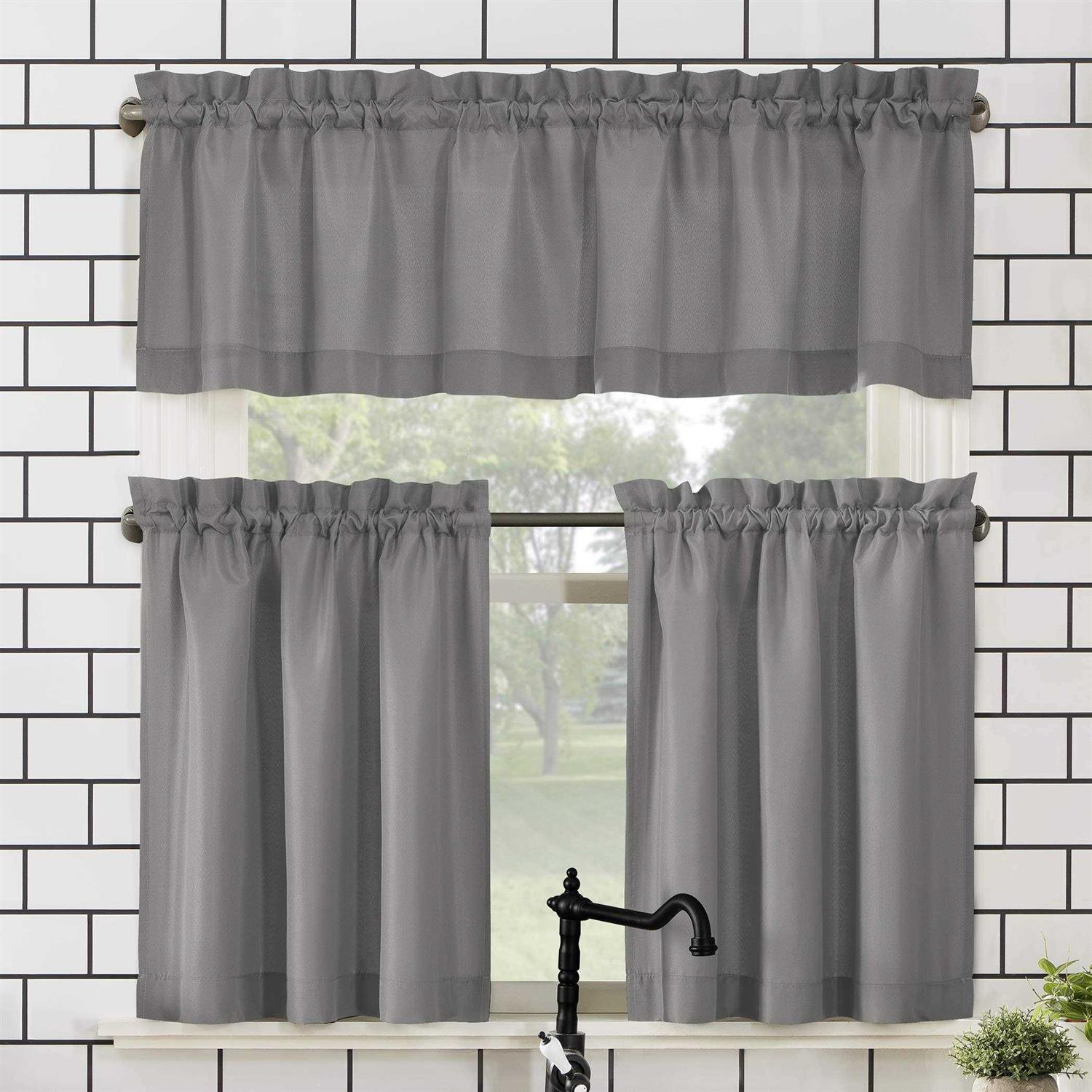 No. 918 Martine Microfiber Semi-Sheer Rod Pocket Kitchen Curtain Valance and Tiers Set – Gray – 54″ x 45″