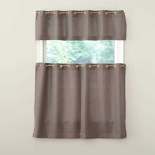 The Montego Kitchen Window ensemble is that easy solid that works in your kitchen, laundry, or mudroom. This forever basic is offered in multiple colors to compliment your d cor. The ensemble features a 14″ Length valance at the top of your window, and tiers in either 24″ or 36″Length. Grommet top for easy hang. Machine Wash. FeaturesThe Montego Kitchen Window ensemble is that easy solid that works in your kitchen, laundry, or mudroom. This forever basic is offered in multiple colors to compliment your d cor. The ensemble features a 14″ Length valance at the top of your window, and tiers in either 24″ or 36″Length. Grommet top for easy hang. Machine Wash.