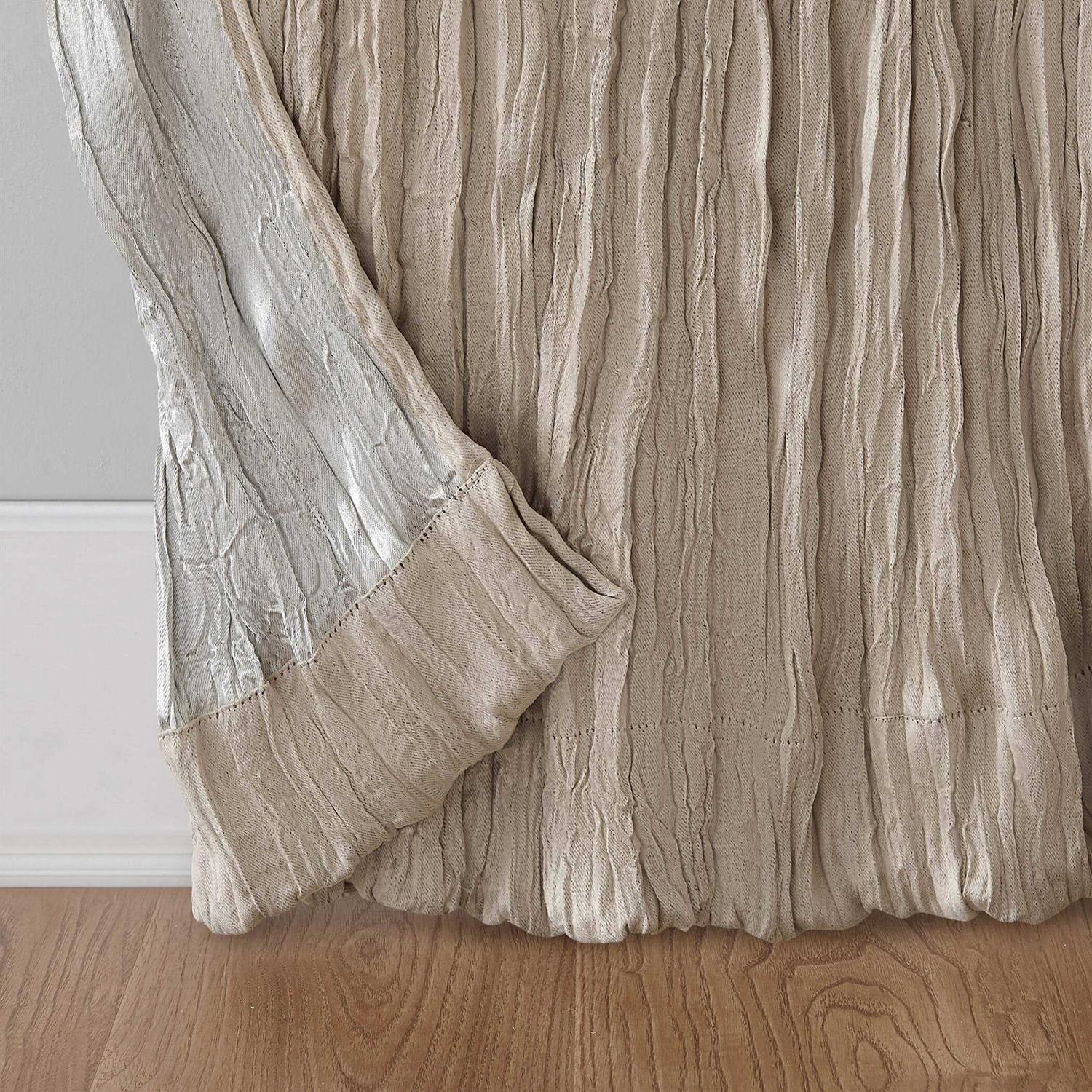 918 Odelia Curtain Panels contrast light and shadow, adding a dramatic luxe appeal to any room of your home. The unique broomstick crushing creates a vintage pleated effect with enviable dimension and texture. Each panel includes seven attached tabs that allow for easy slide-through installation on a standard curtain rod up to 1½” in diameter. Unlined lightweight fabric gently filters light for complete privacy, with a high shine silver color reverse side. Sold as individual panels. Measure carefully before selecting your desired size and quantity. Rod not included. Machine wash cold on gentle cycle. Use non-chlorine bleach when needed. Tumble dry on low heat and use a cool iron as needed.