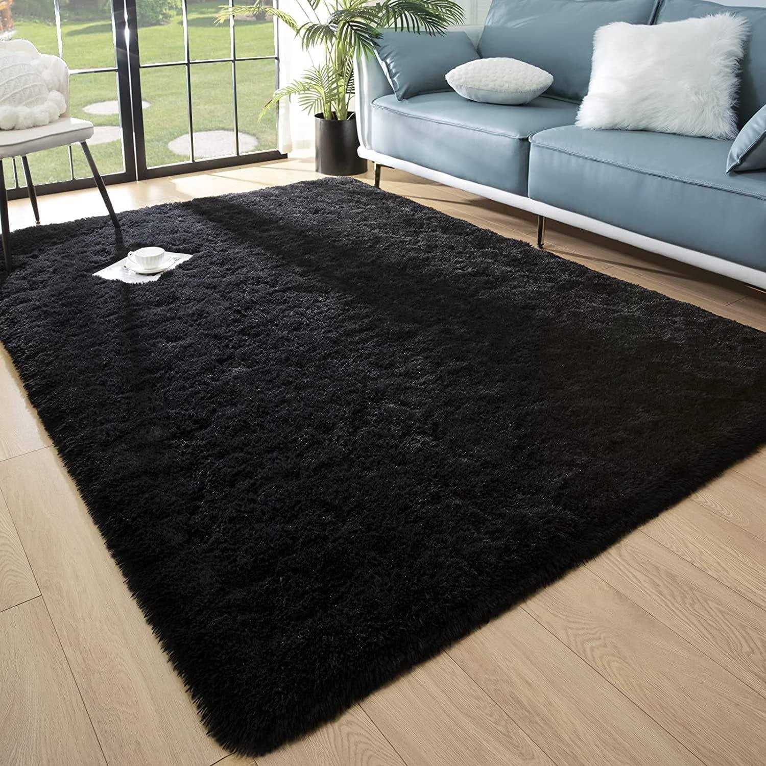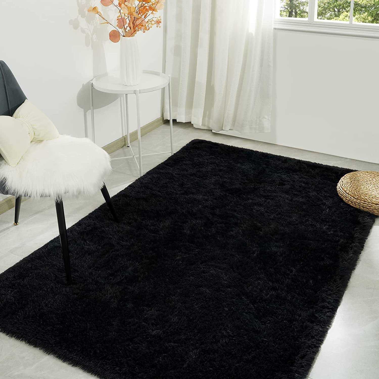 Noahas Soft Fluffy Area Rug Modern Shaggy Bedroom Rugs for Kids Room Nursery Rug Floor Carpets, 2’x 3′,Black, Size: 2′ x 3′