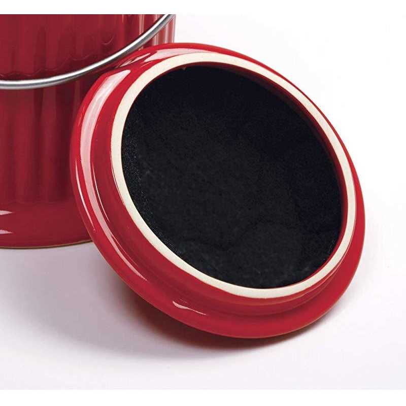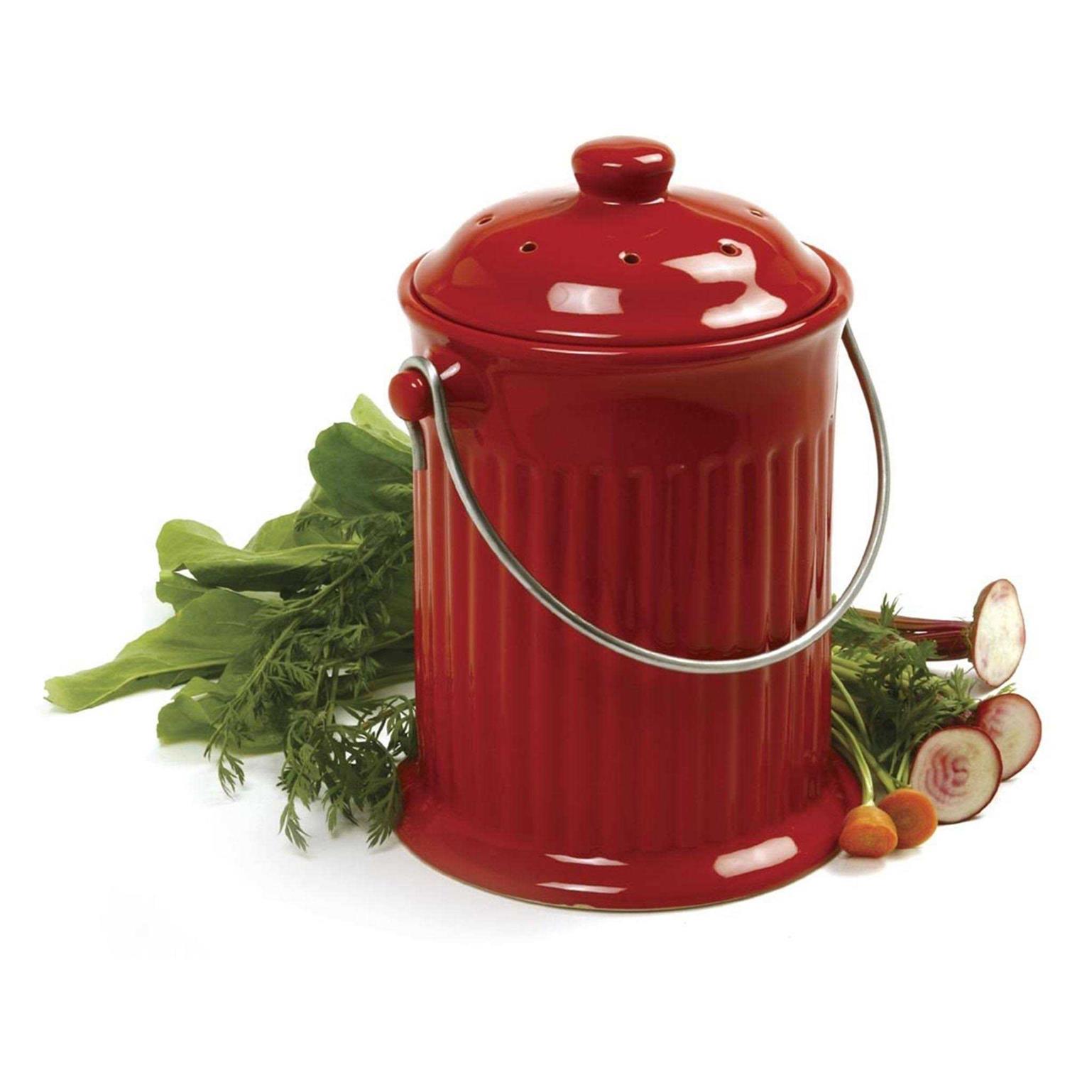 Instead of throwing all your food scraps away, you can store them in this attractive compost pail. The stoneware pail allows for a stylish and odor-free way of storing these useful scraps. The lid contains charcoal filters so you’ll never know what lies inside this sleek pail. The convenient handle makes carrying four quarts worth of potato peels, egg shells, coffee grounds and citrus peels to your garden compost heap. This pail is perfect for any kitchen countertop to disguise odors and hide the unpleasant sight of garbage. Norpro has a solid reputation of consistently providing high quality products that are innovative and ingenious. Their kitchen tools, cookware, and bakeware consistently set the standard by which trends are started. Norpro, Quality for the cook!