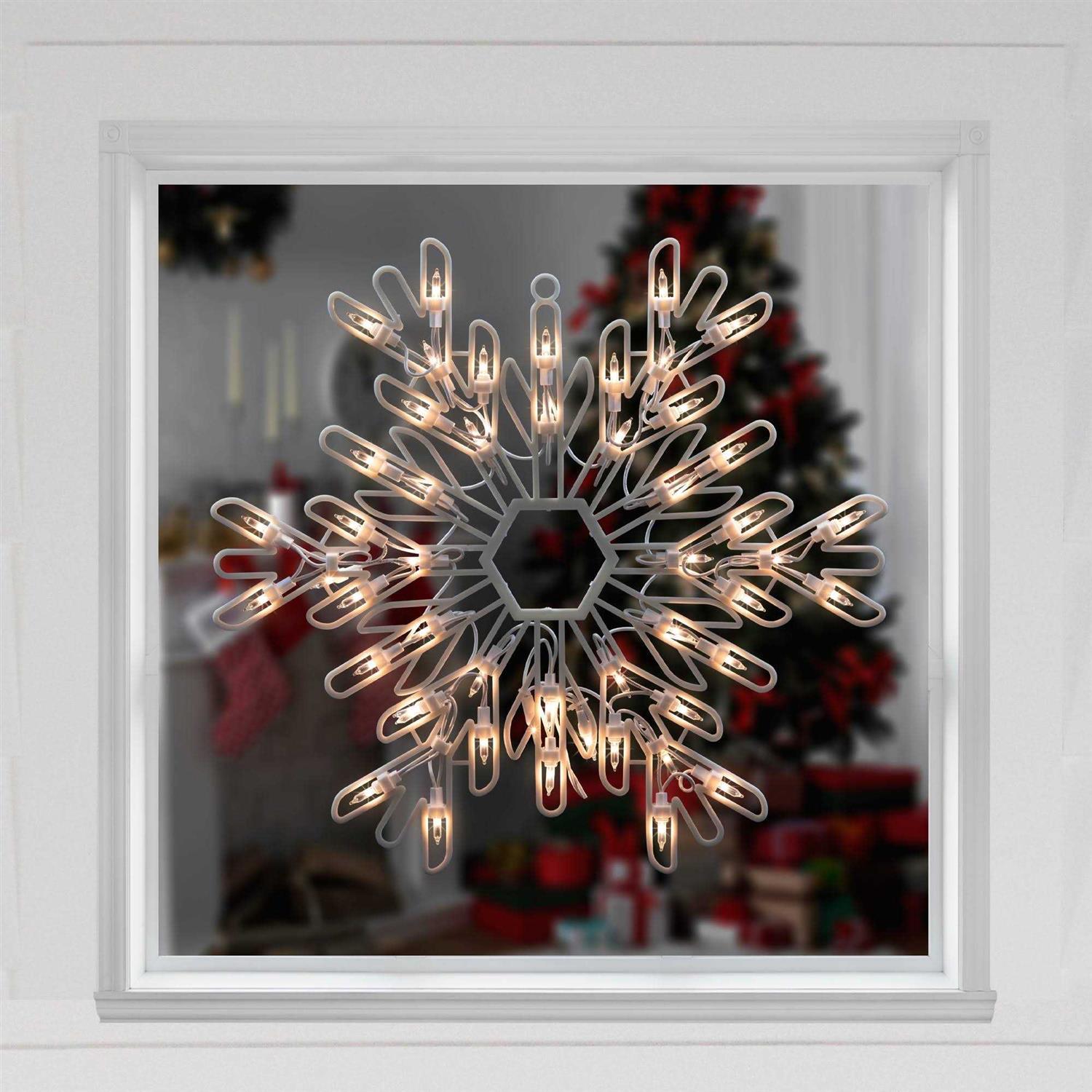 - Lighted snowflake Christmas window silhouette decoration.