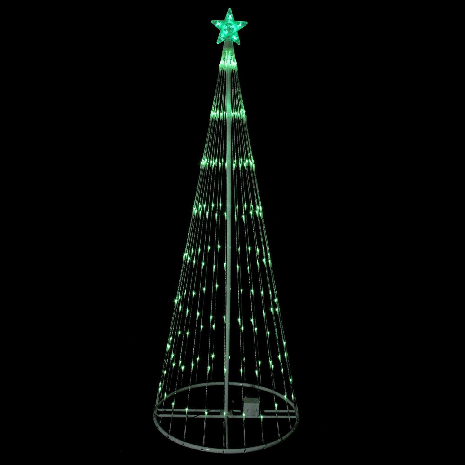 This beautiful large show cone tree. is the perfect addition to your holiday yard decor. Create your own wonderland by effortlessly adding color in a unique and modern way. Perfect for any area of your yard that needs that special holiday touch.